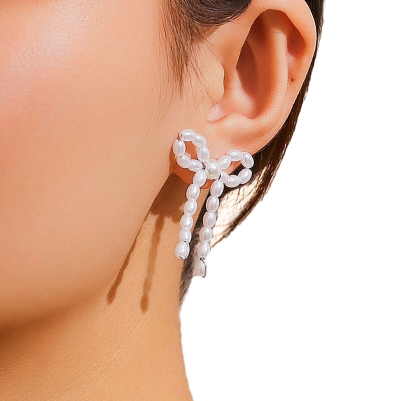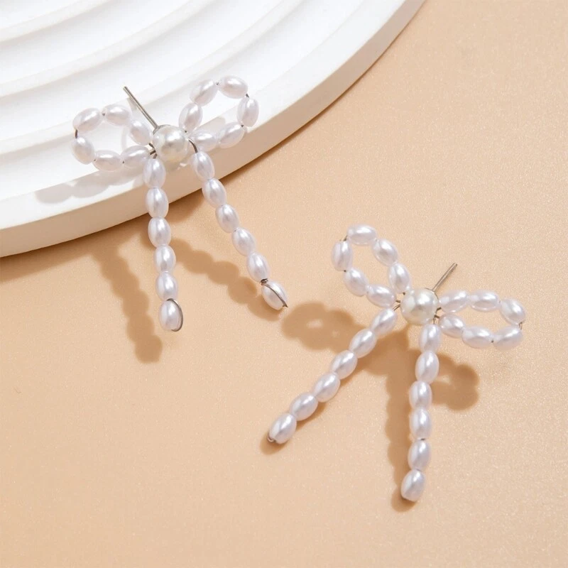 $ 13.2Elegant Sweet Bowknot Dangle Earrings with Long Tassels and Round Beads for Party Wear