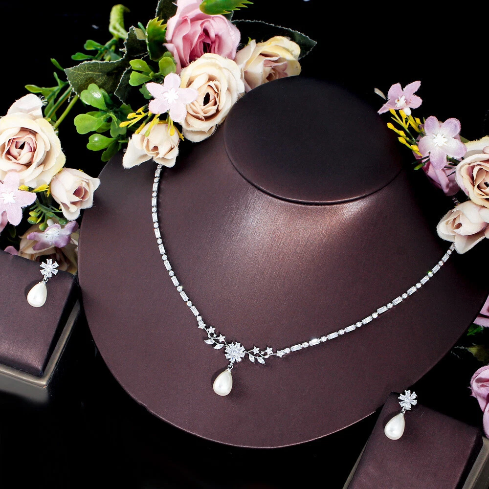 Delicate Silver Plated Pearl Drop CZ Zircon Flower Earrings Necklace Jewelry Set There’s an old saying that: Jewelry is woman’s best friend. And one appropriate luxury jewelry helps to spice up your charm and beauty. And here’s the reason why you choose us: ★ We adopts high-grade Cubic Zirconia, which displays pure and fascinating color; ★ All our items are Elaborate, Gold Plated (white gold plated/yellow gold plated/black gold plated), by which the texture is smooth and with fancy look, and will be appropriate for so many occasions; ★ Our items are with Exquisite Design, which shows your excellent taste, and could catch people’s attention easily. ★ Ideal gift for mother, wife, girlfriend, daughters, brides, bridesmaids, ect. Specification Type: Luxury Jewelry Set Stone Material: Cubic Zirconia Base Metal Material: Brass Metal Material: Silver Plated Pearl Type: White Simulated-pearl Shape: Flower Color: White Suitable Occasion: Daily, Holidays, Party, Engagement, Wedding, Anniversary, Valentine’s Day, Carnival, Performance, ect. Package Includes 1 Pair of CZ Drop Earrings 1 Piece of CZ Necklace Please note: *Please bear in mind that there might be 1~2cm difference due to manual measurement. *Our digital images are as accurate as possible. However, different monitors may cause colors to vary slightly. *We offer after-sale service, if there is any item problem, please feel free to contact us via eBay message first, your kind understanding is much appreciated. About Us Payment Shipping Returns Contact us About Us Topjewel33 is a newly-established online store which dedicates to provide excellent luxury jewelry products, such as earrings, rings, necklaces, bracelets, brooches, hair accessories, and high grade jewelry sets. We target worldwide market, and we strive for offering you unbeatable low price and satisfied customer service. Payment We accept PayPal payment only. Payment must be received within 7 days from the date of purchase. Shipping We do hope all our customers could receive the order asap, so normally, the order will be sent out within 2 working days. And as the delivery is handled by the third party, sorry that we could not guarantee which date you could receive the package. And sometimes the delivery might be a little bit delay, especially in high volume or holiday seasons. However, please don’t worry and feel free to contact us via eBay message, and we will do our best to help. And we sincerely apologize for any inconvenience may cause. Sometimes custom tax might be required, and we are afraid that it will be covered by the buyers, thank you for kind understanding. Returns We provide 30 days money back return policy. And if you have any problem with the item, please make sure the item is in the original package and feel free to contact us via eBay message first, thank you for kind understanding and cooperation. Contact us We offer customer service, if you have any problem with the item before/during/after the purchase, please feel free to contact us via eBay message, and we will get back to you asap. Thank you for your kind patience.