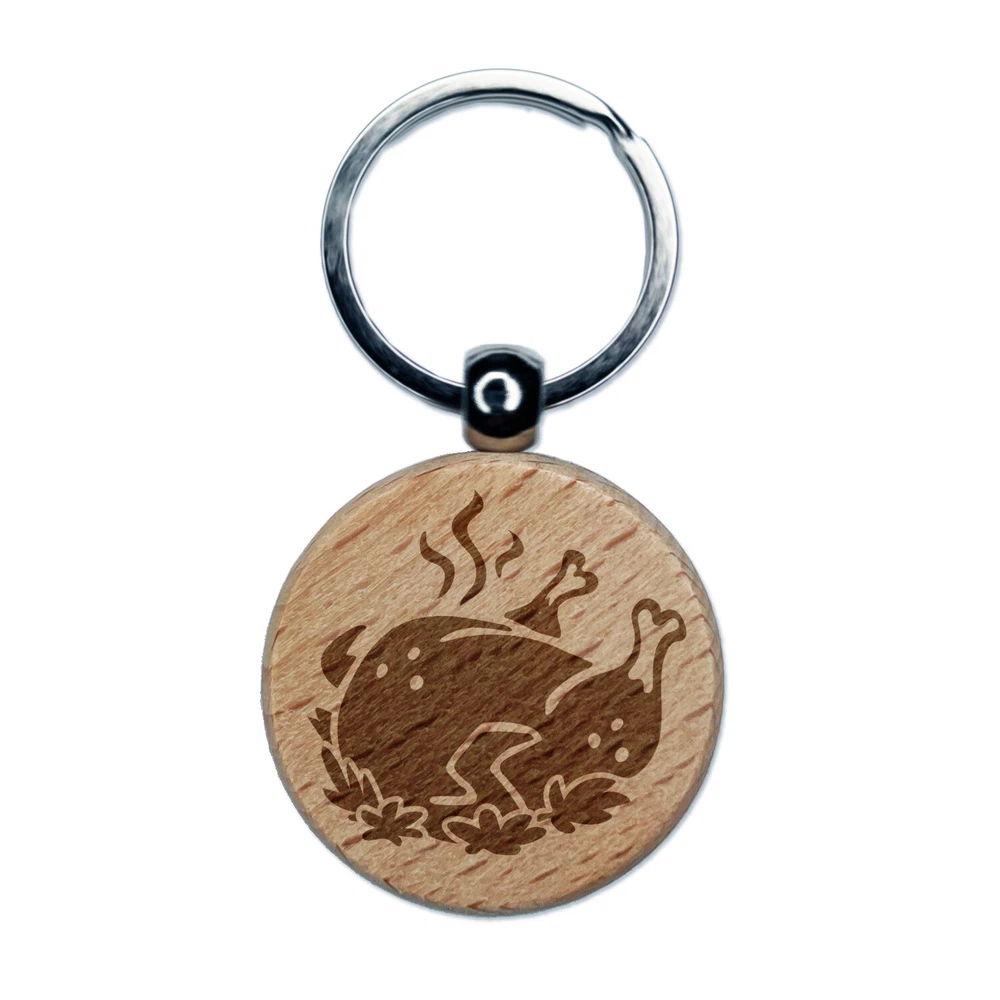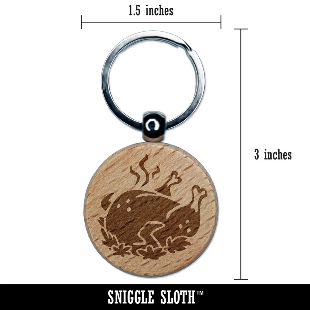 Delicious Turkey Dinner Thanksgiving Engraved Wood Round Keychain Tag Charm