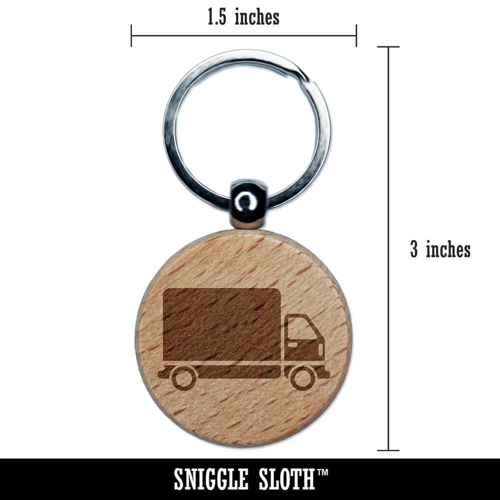 Delivery Truck Vehicle Icon Engraved Wood Round Keychain Tag Charm