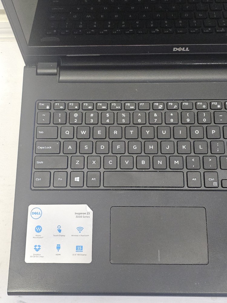 Dell Inspiron 15 Laptop - i3-4030u - 4GB RAM - 250GB SSD - WIN 10 - Read Desc. MINOR SCREEN DAMAGE UPPER LEFT. Intel i3-4030u. 4GB RAM. 250GB SSD. Touchscreen. Operating System: Windows 10. Laptop has been cleared and ready for use. See pictures. Laptop is sold as laptop only with no accessories or chargers included. SHIPPING: We will ship your item in 1-3 Business days. Most items are ship within one day but I work full time and cant always get all orders shipped. Your item will be packaged nicely to ensure safe arrival. We will always use the most cost effective shipping method. TERMS: Please pay for your item within 3 business days or we will be forced to open an unpaid item case after a week. No Returns accepted on items for Parts THANK YOU AND HAVE A GREAT DAY!!!!!