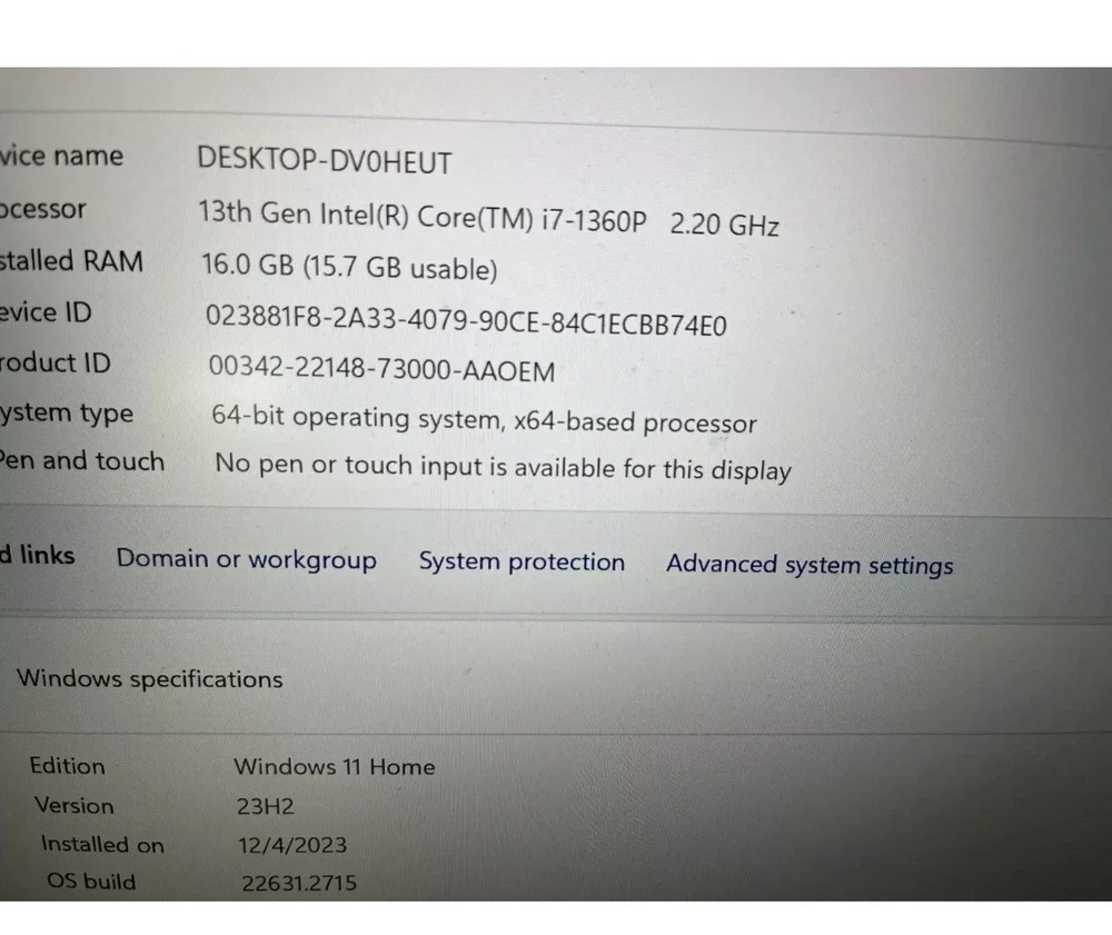Dell Inspiron 5430 14" 16:10 2560x1600 i7-1360U 16GB 1TB Gen 4x4 NVME WQXGA This is a a phenomenal workhorse of laptop. It's a Dell business laptop, which isn't built like their lowerend products which fall apart. It has a crystal clear WQXGA 16:10 display which has had a screen protector since day one. Intel i7-1360P Intel Iris XE graphics (can play plenty of AAA games!) 16GB DDR4 Ram (upgradable) 1tb PCIE Gen 4 NVME with speeds up to 8,000 mb/s read/writes Upgraded Intel WiFi 6e Includes the original Dell charger as well. Please ask me any questions. The ONLY reason I'm selling is due to buying a mini PC. My work has changed, and I have no need for a laptop on the go anymore. The package will require an adult signature upon delivery. Thank you for your consideration!