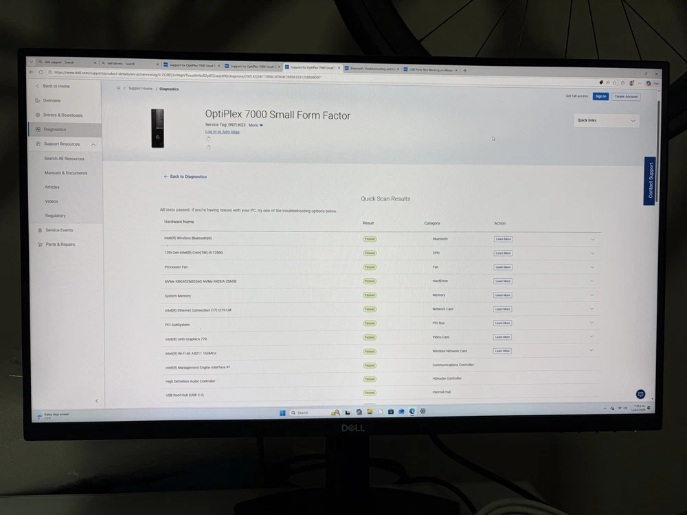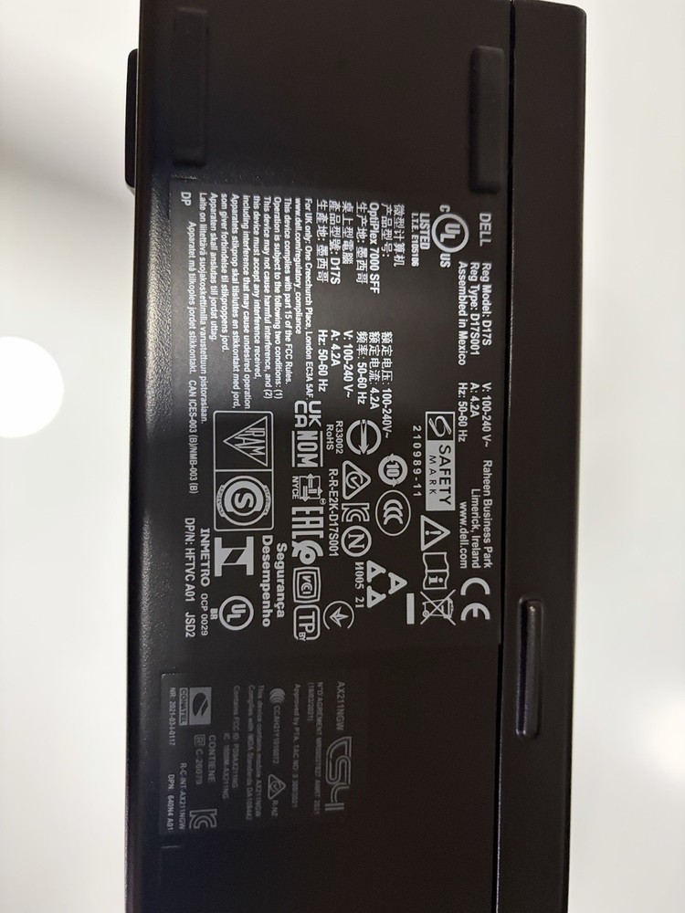 Dell OptiPlex Small Form Factor 7000 Intel Core i5 12th Gen i5-12500 Tetradeca-core (14 Core) 2.50 GHz . 24 GB RAM DDR4 256 GB M.2 PCI Express NVMe SSD Small Form Factor - Black Graphics Card -- 128 MB Intel (R) UHD Graphics 770 Windows Specification Edition -- Windows 11 Pro (Genuine / Active) Version -- 25H2 System Type - 64-bit operating system, x64-based processor Microsoft Office 2024 Professional - (Genuine / Active) Product information Technical Details Screen Resolution -- 3840 x 2160 Max Screen Resolution -- 3840x2160 Processor -- i5 Tetradeca-core (14 Core) 2.50 GHz RAM -- 24 GB DDR4 Hard Drive -- 256 GB M.2 PCI Express NVMe SSD Graphics Coprocessor -- Intel UHD Graphics 770 -128 MB Card Description – Integrated Wireless Type -- Wi-Fi 6E (WiFi 802.11ax) Front Ports: 1x USB 2.0 (480 Mbps) port 1x USB 2.0 (480 Mbps) port with PowerShare 1x USB 3.2 Gen 2 (10 Gbps) port 1x USB 3.2 Gen 2x2 (20 Gbps) Type-C port Rear: 2x USB 2.0 ports (480 Mbps) with Smart Power On 1x USB 3.2 Gen 2 (10 Gbps) port 3x USB 3.2 Gen 1 (5 Gbps) ports Network port 1x RJ45 Ethernet port, 1 GHz Video port 3x Three DisplayPort 1.4a (HBR2) Other Technical Details Brand – Dell Series -- OptiPlex 7010 Item model number – 7010 Hardware Platform -- PC Operating System -- Windows 11 Pro Item Weight -- 10.74 pounds Item Dimensions LxWxH -- 10 x 15 x 19 inches Color – Black Processor Brand – Intel Number of Processors – 6 Computer Memory Type -- DDR4 SDRAM Hard Drive -- NVMe (M2 / 2280 gen 3) What's in the box OptiPlex SFF 7010 Power Cord (US) Keyboard Mouse