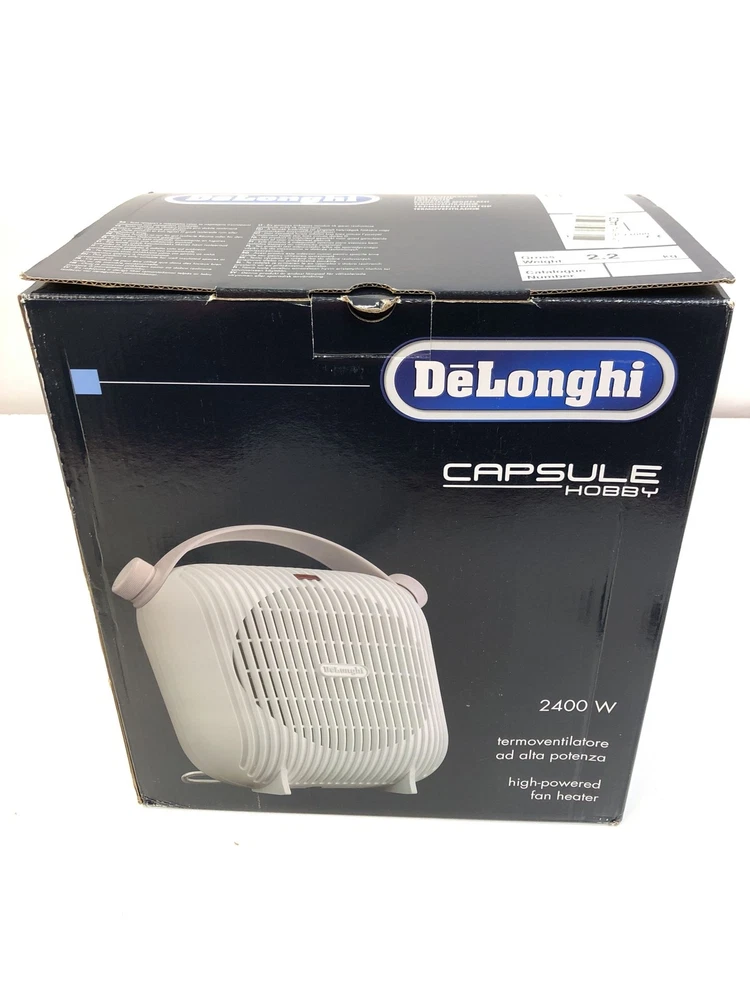 DIY Computers, Tablets & Networking Mobile Phones & Communication TV, Video & Audio Appliances Beauty & Health WE ONLY SELL WHAT YOU SEE IN OUR PHOTOS. MANUFACTURER PHOTOS ARE VIEWS PHOTOS ONLY. DE Gross VAT Invoice GOODS IN VERY GOOD CONDITION THIS WAS CHECKED TO SEE IF WORKING NO ORIGINAL BOX 12 MONTH WARRANTY PRODUCT IN VERY GOOD CONDITION IT WAS CHECKED IF WORKING PAINT OF ORIGINAL BOX 12 MONTHS WARRANTY exhibition product. CE Certified Exhibition product. CE certified Quiet - Thanks to the quiet fan and heating power, the heat expands in no time into the room where you place it, giving you moments of pleasant warmth and rest. For rooms up to 70 m³ Powerful - Table top fan heater with 2 power levels: 2400W and 1500W, heated without worrying about consumption, the product is tested for adequate heating for optimal consumption. Add a touch of comfort to your home with the efficient De'Longhi fan heater. Frost protection: Activates when the temperature drops below 5°C.