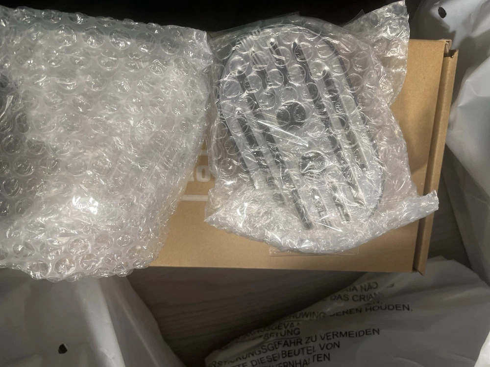 The item arrived as described —new, but without the original box. The product kept the original plastics, so you could confirm it was not used. The product works perfectly. I am missing one water filter described in the product manual.