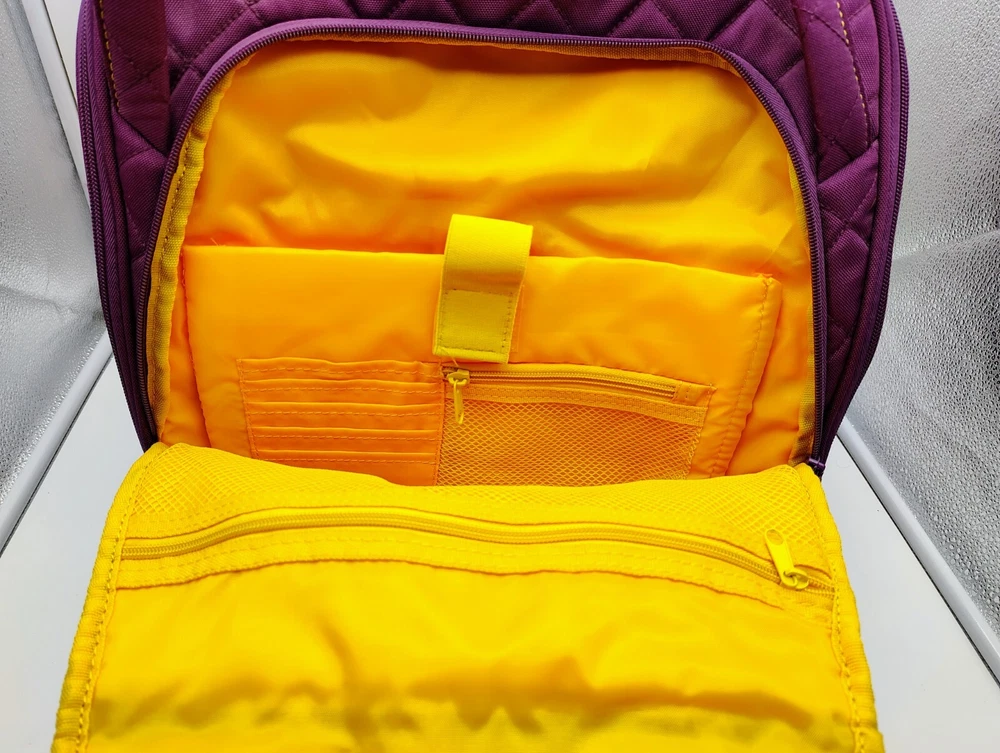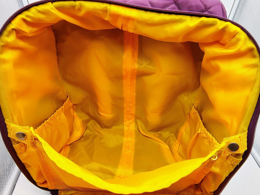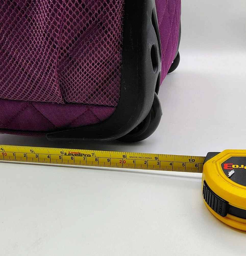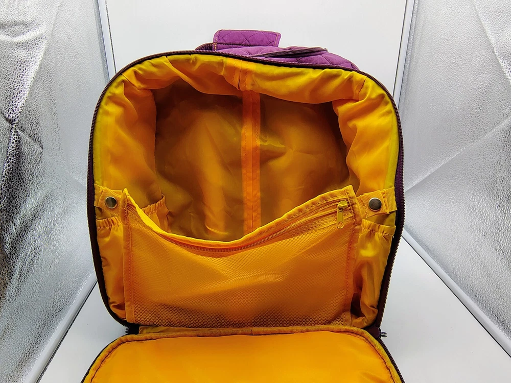 Type:Underseat LuggageColor:Plum Exterior/Yellow InteriorCountry/Region of Manufacture:ChinaPattern:Quilted SolidUPC:Does not applyBrand:DELSEYgtin13:Does not applyFeatures:Wheels/Rolling, Carry On, Laptop Compartment, Soft Case, Water Bottle Pocket, Luggage BandSize:15"