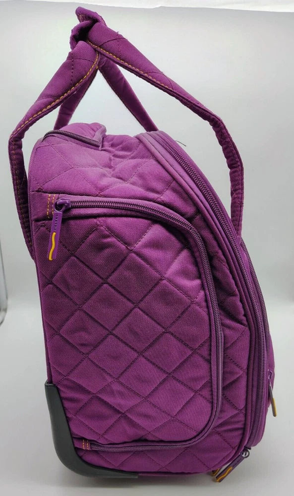 Delsey Paris Quilted Plum And Yellow Underseat/Weekender Bag with Handle/Wheels