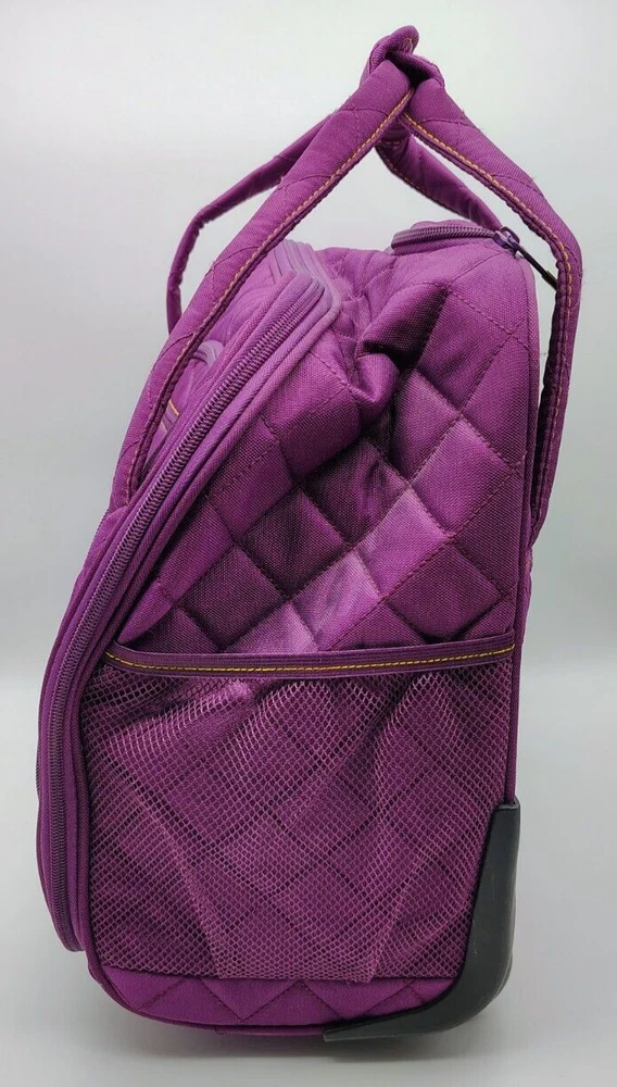 HomeDelsey Paris Quilted Plum And Yellow Underseat/Weekender Bag with Handle/Wheels