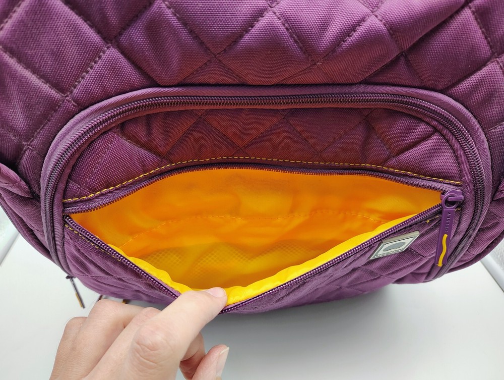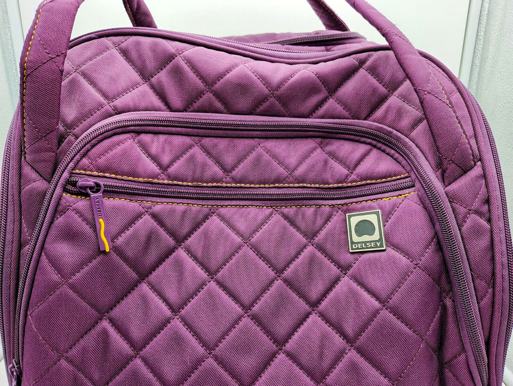 UPC:Does not applyColor:Plum Exterior/Yellow InteriorBrand:DELSEYgtin13:Does not applyFeatures:Carry On, Laptop Compartment, Soft Case, Water Bottle Pocket, Wheels/Rolling, Luggage BandCountry/Region of Manufacture:ChinaPattern:Quilted SolidSize:15"Type:Underseat Luggage