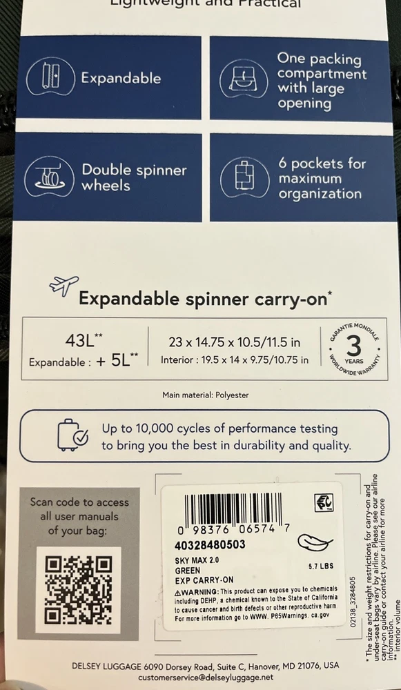 DELSEY PARIS Sky Max 2.0 Softside Expandable Luggage with Spinner Wheels, Green, Carry-on 21 Inch Interior: 19.5 x 14 x 9.75/10.75 in
