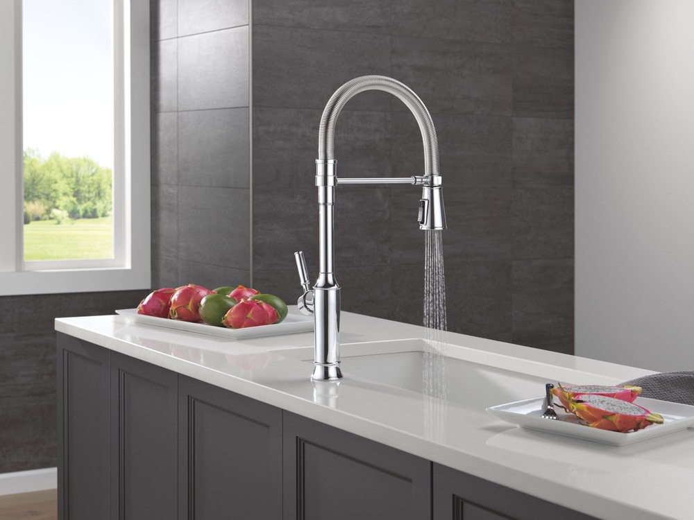 Delta 9684-DST Renaldi 1.8 GPM 1 Hole Pre-Rinse Kitchen Faucet - Lumicoat Arctic