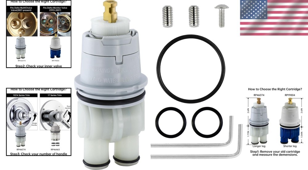 RP46074 Delta Shower Cartridge Replacement - Fits 13/14 Series Faucets ‹ › ‹ › ‹ › ‹ › ‹ › ‹ › ‹ › ‹ › ‹ › ‹ › ‹ › RP46074 Delta Shower Cartridge Replacement - Fits 13/14 Series Faucets Product Features: OEM Design & Perfect Fit: Meets OEM standards, designed specifically for Delta MultiChoice 13/14 single handle shower faucets. Fix Leaks & Drips: Rigorously tested to ensure excellent leakage resistance, restoring the functionality of your shower. Durable & Long Lasting: Crafted from extra-durable material, ensuring your plumbing maintains peak performance for to come. Cost-Efficient: A smart investment allowing you to repair your plumbing at half the cost of a complete faucet replacement. Hassle-Free Installation: Comes with easy-to-follow instructions, making installation a breeze. Why Choose Our RP46074 Delta Shower Cartridge? Transform your shower experience with the RP46074 Delta Shower Cartridge Replacement, designed meticulously for unmatched compatibility and performance. Say goodbye to annoying leaks and drips with a product that offers exceptional durability and efficiency. Not only does it fit seamlessly into your existing fixtures, but it also empowers you to carry out plumbing repairs without breaking the bank. Enjoy the effortless installation process, guided by clear instructions, and restore your bathroom’s tranquil oasis without hassle. Elevate your plumbing solutions—choose the RP46074 Delta Shower Cartridge for reliability, cost-effectiveness, and long-lasting peace of mind. Shipping Free & Fast Shipping - We offer free shipping to most of the USA with a normal delivery time of 3-7 days. However, due to the current situation, additional delivery time (up to 3 weeks) may be required for some items. Alternative Carriers - We may use alternative carriers (e.g. USPS, FedEx, UPS, etc.) to ensure your package arrives safely and on time. Due to the use of multiple carriers, we are unable to provide a tracking number automatically. Handling Time - Orders are processed and shipped within 1-2 business days of receiving cleared payment. Shipping Restrictions - Shipping to Alaska, Hawaii, Puerto Rico, Guam, and other US territories may incur shipping charges or delivery restrictions. Please contact us before ordering, or your order can be refunded/cancelled. State Restrictions - There may be restrictions based on your state of purchase. For example, certain items may not be shipped to California due to state regulations. Contact for Tracking Updates - If you require tracking updates or have any concerns about the delivery of your order, please feel free to contact us, and we will be happy to assist you. Return 30-Day Hassle-Free Returns - We want you to be completely satisfied with your purchase. If you are not, you can return the item within 30 days of receiving it for a full refund or exchange. Easy Return Process - To start a return, simply contact us and we will provide you with a prepaid return shipping label and detailed instructions. Restocking Fee - There are no restocking fees for returns. However, the buyer is responsible for return shipping costs if the return is not due to a seller's error. Refund Processing Time - Refunds will be processed within 5 business days of receiving the returned item in its condition. Payment We accept all major credit cards, PayPal, and Apple Pay for your convenience. Your payment information is secure and encrypted to ensure a safe and seamless transaction. Please complete your payment within 3 days of purchase to avoid any delays in shipping. Feedback Your feedback is extremely important to us. We strive to provide the best products and customer service possible. If you are satisfied with your purchase, please take a moment to leave us a positive review. If you have any concerns or issues with your order, please contact us before leaving negative feedback. We are committed to resolving any problems and ensuring your satisfaction. Contact Us If you have any questions or concerns, please feel free to out to our customer support team. You can contact us through the eBay messaging system. We are available Monday to Friday, 9:00 am to 5:00 pm EST, and we will do our best to respond to your inquiry within 24 hours. Buy it now and enjoy a pleasant shopping experience! Type: RP46074 Cartridge Replacement Unit Quantity: 1 Material: extra-durable material Unit Type: Unit
