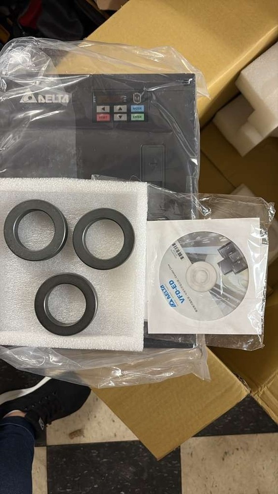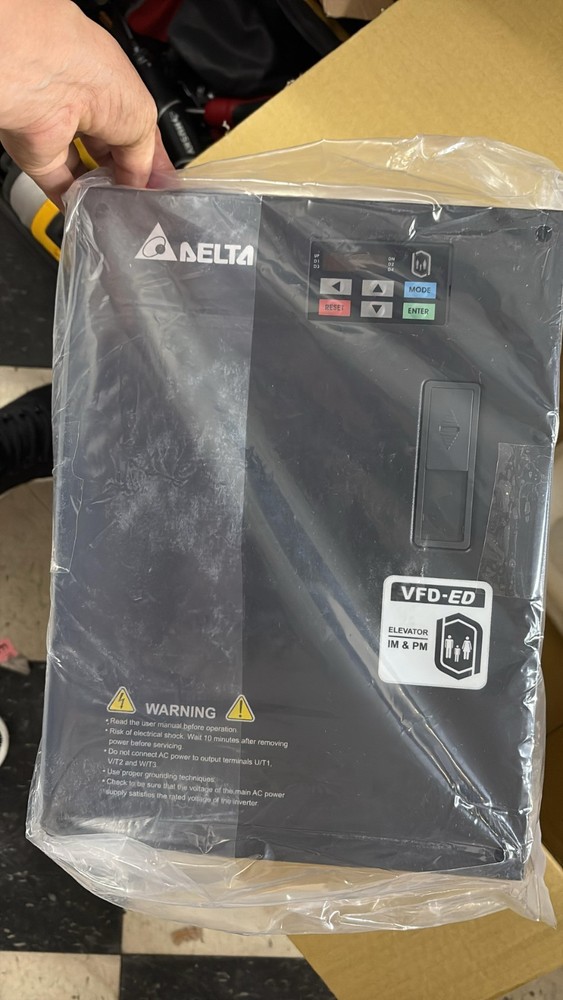 The Delta VFD110ED23S AC Drive from the VFD-ED Series is a high-performance variable frequency drive (VFD) designed for precise motor control in demanding industrial applications. Built for reliability and flexibility, this drive supports both asynchronous and synchronous motors and offers advanced control features including encoder feedback, programmable I/O, and integrated communication protocols . With a 15 HP rating, 230V output, and 45A current capacity , the VFD110ED23S delivers efficient motor speed control, improved energy savings, and enhanced operational performance for industrial automation systems. This drive is ideal for manufacturing equipment, conveyors, pumps, compressors, and other industrial motor control applications . Key Features ✔ 15 HP High-Performance AC Drive – Reliable motor speed control for industrial applications ✔ Wide Power Range Support – Supports power ratings from 2.2 kW to 75 kW within the series ✔ Supports Multiple Motor Types – Compatible with asynchronous and synchronous motors ✔ High Output Frequency – Adjustable output frequency up to 400 Hz ✔ Advanced Encoder Support – Compatible with ABZ, ABZ+UVW, SIN/COS, SIN/COS+Endat2.1 encoders ✔ Programmable I/O – 8 programmable digital inputs and 6 programmable outputs ✔ Communication Interfaces – Built-in CAN and Modbus communication for industrial networking ✔ Integrated Keypad – Built-in 7-segment digital keypad , optional LCD keypad available ✔ Auto-Tuning Capability – Automatically tunes parameters with load attached for optimal performance ✔ High Overload Capacity – Handles up to 200% overload capacity for demanding applications ✔ UPS Compatibility – Supports 1-phase 230V UPS operation for uninterrupted power control ✔ Safety Feature – Supports single output contactor operation (SIL2) Technical Specifications Brand: Delta Model: VFD110ED23S Series: VFD-ED Product Type: AC Drive / Variable Frequency Drive (VFD) Condition: New Electrical Specifications Horsepower Rating: 15 HP Power Rating: 11 kW Rated Voltage: 230 V Output Voltage: 230 V Rated Amps: 45 A Output Amperage: 45 A Input / Output Phase: 3 Phase Input – 3 Phase Output Rated Input Frequency: 60 Hz Output Frequency: Up to 400 Hz Overload Capacity: Up to 200% Physical & Protection Enclosure Rating: IP20 Applications Suitable for a wide range of industrial motor control applications including: Conveyor systems Pumps and fans Compressors Manufacturing machinery HVAC equipment Industrial automation systems Package Includes Delta VFD110ED23S AC Drive