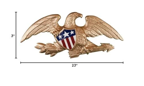 Enhance a gable, fireplace or the exterior of your home with a replica of America's freedom. This eagle is 10" high and has a 23" wing span. Gold Bronze Finish Proudly Made in the USA Hand Cast Aluminum Model: WE-23-GB Brand Name: