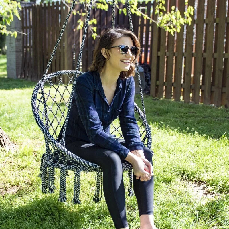 This bright and beautifully handwoven cotton-polyester blend Cream and Black Equip Deluxe Macrame Outdoor Hanging chair is perfect for reading and relaxing on long summer days. The flowing fringe gives it a bohemian style that is eye-catching and comfortable. This Macrame chair also features an ultra-plush round pillow and detachable phone pocket. This hanging swing chair is lightweight at only 8.4 lb. making it portable and easy to take with you to the park or anywhere you want to relax for a while. The included hanging kit has a tree strap and carabineer that hooks to the metal rings on the hanging chair. This trendy Macrame Chair will become your favorite reading nook, meditation oasis, or a place to soak up the sun. Cream and Black Outdoor Deluxe Macrame Hanging Chair Product Weight: 8.4 lb. Weight Capacity: 250 lb. Comfortable handwoven cotton-polyester blend macramé for added comfort Includes Hanging Kit with Strap and Carabiners for easy setup Open Size: 47" H x 24" W Includes ultra-plush round pillow, and detachable cell phone pocket Supportive frame for hanging out anywhere Payment Delivery details Returns Contact Us Feedback Payment 1.We accept PayPal only. 2.Payment must be received within 7 business days of auction closing. 3.We ship to your eBay or Paypal address. Please make sure your eBay and Paypal address is correct before you pay. Delivery details We try our best to ship out same day for payment cleared before 5.00 PM (Pacific Time) , Order placed on weekend or holiday will be shipped on Monday or next working day. Below is the approximate delivery time to different countries (just estimated, not guaranteed): 7-25 working days to buyer in USA. Returns 1.We offer 30 days return policy. Please contact us within 30 days from the date you receive your order if you have any issues with the product and want to return. 2.All items must be returned in the original packaging and you must provide us with the tracking shipping number, specific reason for the return, and your eBay ID. 3.We will refund you FULL WINNING BID AMOUNT, upon receipt of the item in its original condition and packaging with all components and accessories included, AFTER BOTH Buyer and Seller cancel the eBay transaction. Or, you can choose to get a replacement. Contact Us All communication is done through EBAY MESSAGES ONLY. If any question, please feel free to contact us via "Ask seller a question" or "Contact Seller",We try our best to reply to your emails as soon as possible, due to high volume of daily incoming emails and time zone difference, we may not be able to reply your emails immediately. Please allow 1-2 business days for us to response. Feedback Feedbacks: When you receive the item and satisfied with the product, please leave us positive feedback. If for any reason you are not satisfied with your purchase from us, please contact so we can get to work and resolve this issue for you. Please don't leave neutral or negative feedback without giving us an opportunity to try and make it right. Our goal is to ensure a happy shopping experience with us. Your Positive feedback is very much appreciated!
