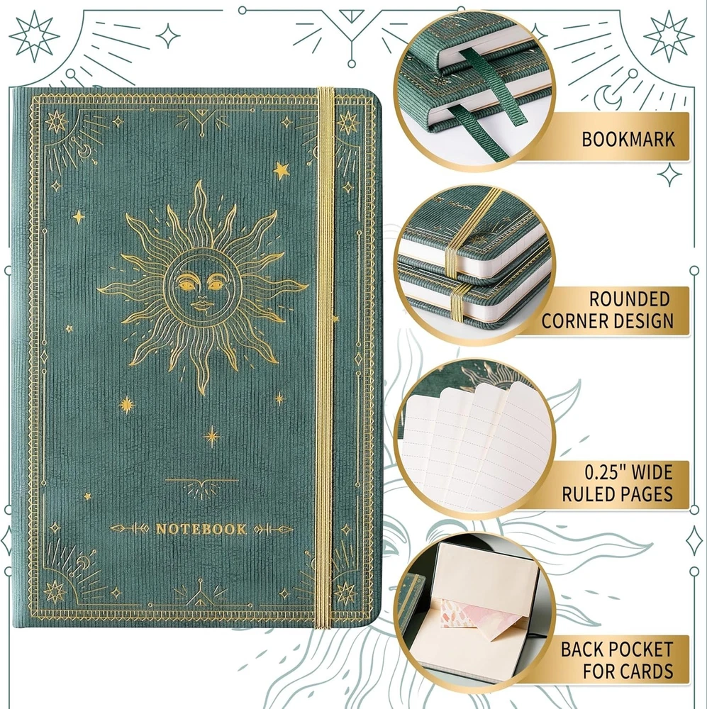 Deluxe Thick-Paper Journal in Cyan - Hard Cover, Pocket, Banded for Convenience ‹ › ‹ › ‹ › ‹ › ‹ › ‹ › ‹ › ‹ › ‹ › ‹ › ‹ › Deluxe Thick-Paper Journal in Cyan Hard Cover, Pocket, Banded for Convenience Features: HARDCOVER JOURNAL: A classic ruled pages design for everyday use, featuring an elegant sun stamping on the front cover and a water-resistant finish. Perfectly sized for your backpack, allowing for seamless daily adventures. THICK PAPER: 144 ruled pages crafted from thicker paper than standard options, minimizing ink leakage, fraying, and shading concerns. The cream, acid-free paper provides an unparalleled writing experience, and the sturdy hard cover binds each notebook securely. FAUX LEATHER: Exquisite faux leather texture finishes the exterior, giving it a soft feel akin to a baby’s skin. This fashionable yet durable cover adapts beautifully while protecting the pages and providing a reliable writing surface wherever you go. BACK POCKET & BANDED: Features a robust expandable back pocket to tuck away loose items and an elastic closure band that keeps your notebook securely closed during transit. EVERYDAY USE & GIFT CHOICE: Perfect for jotting down your story, note-taking in classes or meetings, sketching ideas, or cherishing memories in this beautiful journal. A thoughtful gift for friends and family that they will surely appreciate. Make Every Idea Count! This medium-sized journal boasts 144 pages of thick ruled paper, a striking faux leather hardcover, an expandable back pocket, and an elastic closure band. The captivating sun on the front cover adds a visual delight, while the elastic ribbon holds the notebook tightly closed. With a black ribbon page marker and thread-bound binding for a perfect 'Lie Flat' opening, this journal is designed for seamless writing. The ruled paper offers an exceptional writing experience that is compatible with most pens, pencils, or markers, allowing your thoughts to flow smoothly onto the pages. It's time to write down your ideas and transform them into reality. Invest in your creativity today with the Deluxe Thick-Paper Journal! Shipping Free & Fast Shipping - We offer free shipping to most of the USA with a normal delivery time of 3-7 days. However, due to the current situation, additional delivery time (up to 3 weeks) may be required for some items. Alternative Carriers - We may use alternative carriers (e.g. USPS, FedEx, UPS, etc.) to ensure your package arrives safely and on time. Due to the use of multiple carriers, we are unable to provide a tracking number automatically. Handling Time - Orders are processed and shipped within 1-2 business days of receiving cleared payment. Shipping Restrictions - Shipping to Alaska, Hawaii, Puerto Rico, Guam, and other US territories may incur shipping charges or delivery restrictions. Please contact us before ordering, or your order can be refunded/cancelled. State Restrictions - There may be restrictions based on your state of purchase. For example, certain items may not be shipped to California due to state regulations. Contact for Tracking Updates - If you require tracking updates or have any concerns about the delivery of your order, please feel free to contact us, and we will be happy to assist you. Return 30-Day Hassle-Free Returns - We want you to be completely satisfied with your purchase. If you are not, you can return the item within 30 days of receiving it for a full refund or exchange. Easy Return Process - To start a return, simply contact us and we will provide you with a prepaid return shipping label and detailed instructions. Restocking Fee - There are no restocking fees for returns. However, the buyer is responsible for return shipping costs if the return is not due to a seller's error. Refund Processing Time - Refunds will be processed within 5 business days of receiving the returned item in its condition. Payment We accept all major credit cards, PayPal, and Apple Pay for your convenience. Your payment information is secure and encrypted to ensure a safe and seamless transaction. Please complete your payment within 3 days of purchase to avoid any delays in shipping. Feedback Your feedback is extremely important to us. We strive to provide the best products and customer service possible. If you are satisfied with your purchase, please take a moment to leave us a positive review. If you have any concerns or issues with your order, please contact us before leaving negative feedback. We are committed to resolving any problems and ensuring your satisfaction. Contact Us If you have any questions or concerns, please feel free to out to our customer support team. You can contact us through the eBay messaging system. We are available Monday to Friday, 9:00 am to 5:00 pm EST, and we will do our best to respond to your inquiry within 24 hours. Buy it now and enjoy a pleasant shopping experience! MPN: Notebook_Journal Unit Quantity: 144 Special Attributes: Notebook Journal Cover Material: Faux Leather