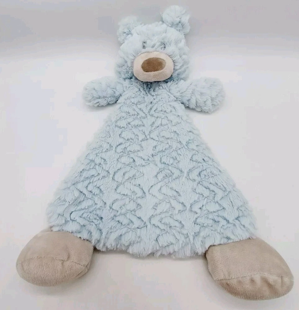 Demdaco Bear Plush Security Baby Blanket Blake Lovey Rattle Blue Gray 12"