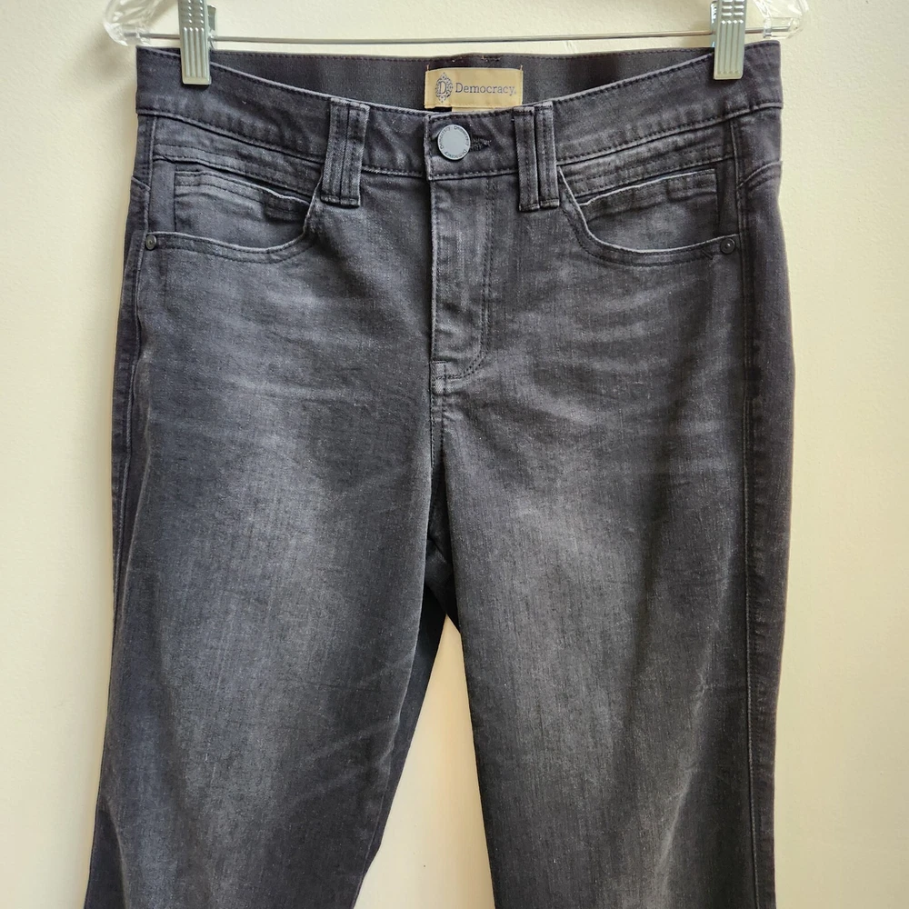 Democracy Jeans Women's 10 Black Denim Ab Technology Bootcut Crop Raw Hem Grunge - Pre-Owned in Very Good Condition - Measurements in Photos - Returns acceptable within 30 days of purchase unworn, in original condition - Check out my E-bay Store. Lots of Choices Available. Reduced shipping for 2 or more items. Let me know before you pay so I can send you an invoice to discount the shipping