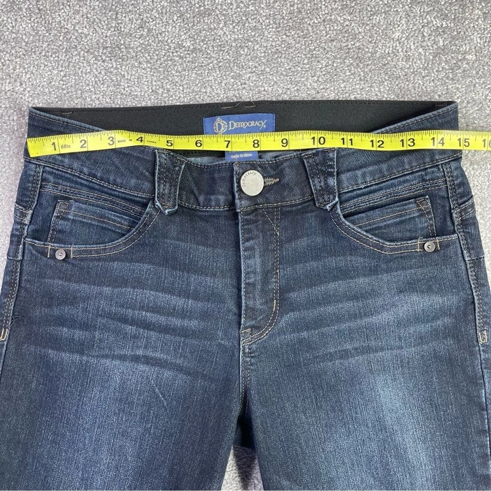 Brand: Democracy Season: Fall, Spring, Summer, Winter Fit: Regular Features: Comfort, Easy Care, Pockets, Shaping, Slimming, Stretch Size Type: Regular Closure: Zip Accents: Logo Garment Care: Machine Washable Fabric Wash: Dark Color: Blue Material: Cotton Blend Pattern: Solid Type: Jeans Theme: Bohemian, City, College, Preppy Seller Notes: “In excellent, pre-owned condition with no flaws to note.” Vintage: No Department: Women Pocket Type: 5-Pocket Design Fabric Type: Denim Size: 8 Style: Skinny Inseam: 30 in Waist Size: 29 in Rise: Mid (8.5-10.5 in)