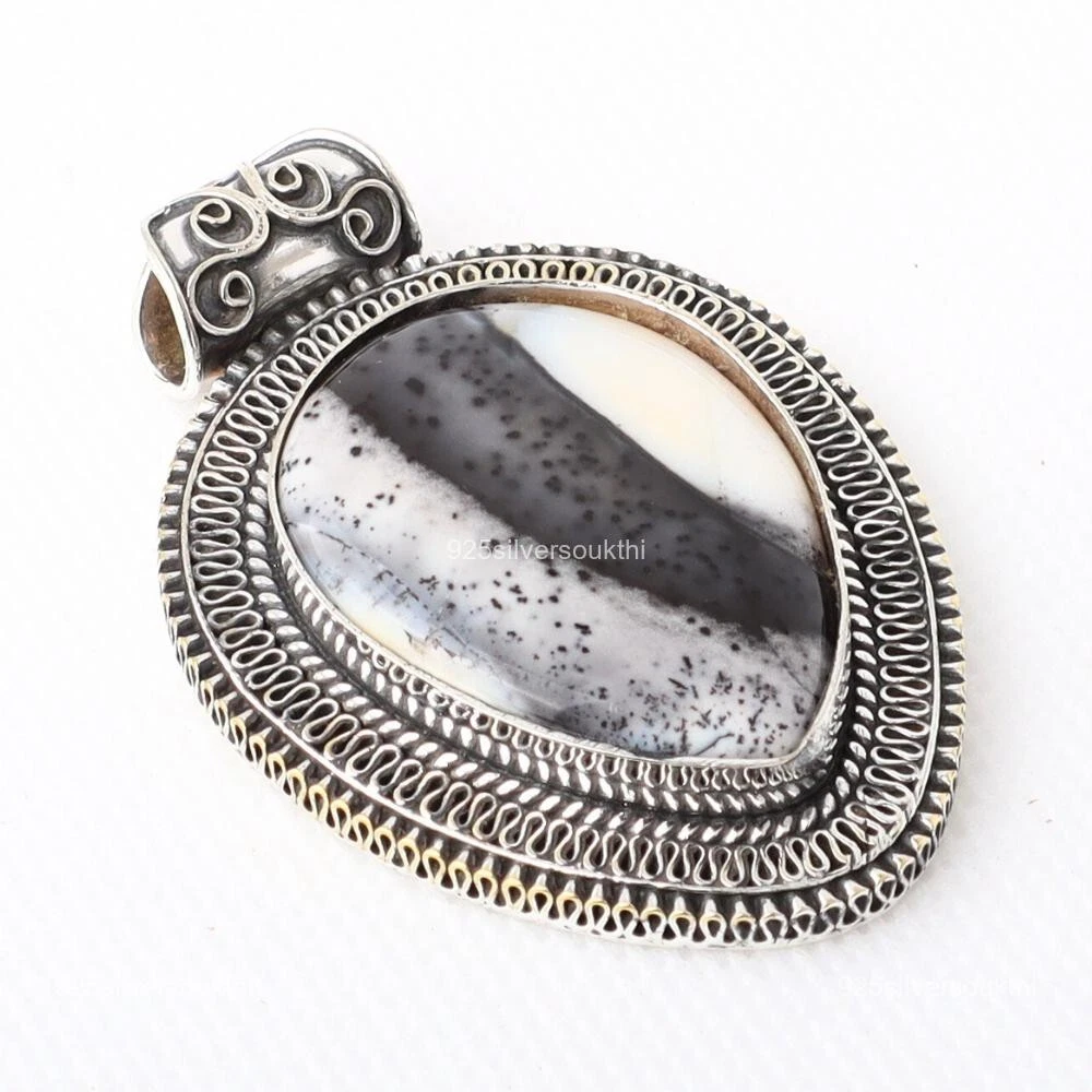 Complete your look for a glamorous evening in this gorgeous Sterling Silver Pendant studded with Dendrite Opal. This will go well with all of your dresses and are attention seeking. ------------------------------------------ Welcome to Our Shop 925silversoukthi ------------------------------------------ Wedding Gift For Her 925 Sterling Silver Natural Dendrite Opal Gemstone Pendant Description :- SKU:- SP0367 Metal:- Sterling Silver Metal Purity:- 925 Gemstone:- Dendrite Opal Gemstone Color:- Black Gemstone Shape :- Pear Gemstone Creation :- Natural Stone Setting :- Bezel Pendant Length:- 53.31 Inches Pendant Width:- 37.4 Inches Shipping Terms :- We only ship to the confirmed address provided by eBay. Before you pay, Please make sure your address in eBay matches the address confirms. BUYER INFORMATION :- We strive our best to provide you the most reliable, affordable way of shipping service. But sometimes international delivery is highly depended on the Courier Company and local customs/duties. If you do not receive your item on time, please contact us immediately for further assistance. Thank you for your understanding. Shipping Method :- All items will be shipped by India Post International and USPS, UPS, DHL, FedEx, DPD. Shipping Time :- All items will be shipped within 5 business Working Days receipt of payment (except Saturday and Sunday). It takes about 15-25 days to reach to USA, UK. Other country takes about 20-35 days. Note: - We are unable to take any responsibility for any custom delay or tax. Reason is because transit time is highly depended and provided by Postal Service (except weekends and holidays) About Item :- All items sold by us are being described to the best of our abilities, as accurate as possible, and with utmost conscientiousness on our part. However, to avoid any potential oversights, I respectfully request your assistance in helping us to make this a mutually satisfactory transaction by THOROUGHLY reviewing item description and photos, and asking all questions PRIOR TO BUYING. Please Note that size and color representation are subject to manufacturing variance and may not be exact. Also note that monitor settings may vary from computer to computer and may distort actual colors. Please read these terms thoroughly before Bought Your Jewelry. Payment Method and Terms :- We accept All Type of Payment. All Payments must be confirmed Return/Refund Accept :- Return is accepted within 30 days after the buyer's receiving the item. If you are not completely satisfied with your purchase, you may return it to us for a prompt exchange or we will refund your payment. Customer Satisfactory :- Note: Do not hesitate to contact us any time before and after your purchase, we are committed to your 100% customer satisfaction. Our goal is to make sure you are a happy customer and pleasant shopping with us. When you shop with us, your satisfaction is our 1st priority. Buy Jewelry With Confidence! If you have Any Problems Please give us the opportunity to resolve any problem. We understand the concerns and frustrations you might have, and will try our best to resolve the issues. Please email us before leaving any negative feedback or open any dispute on eBay And PayPal Too. We care about our valued customers, and will always try to help you. We'll Resolve the issue as soon as possible we can receive your message.. FEEDBACK :- Positive feedback is greatly appreciated and we will do the same in return. If you are unhappy for any reason, please do not leave Negative or Neutral Feedback and allow us the opportunity to resolve any issue(s). We are very fair and easy to deal with. Thank You We offer a 100% Satisfaction Guarantee of our exclusive handcrafted silver jewelry, studded with gemstones. It's our pleasure to do business with you. Sincerely, You're the best! Thanks for visiting! 925silversoukthi