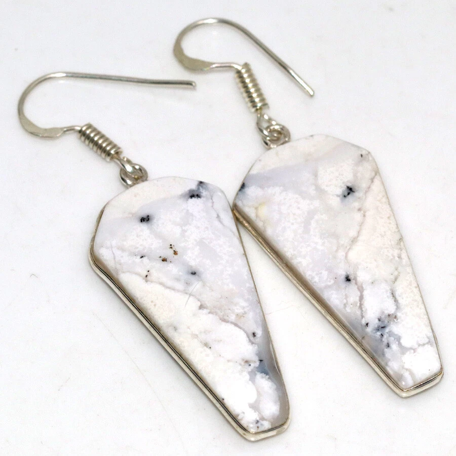 Dendritic Opal 925 Silver Plated Gemstone Earrings 2" Gifts For Women JW