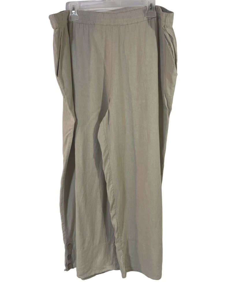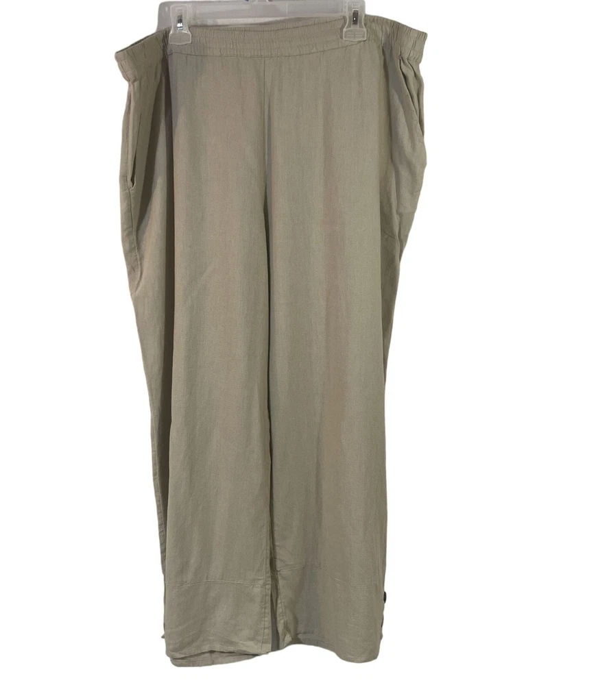 Style: Ankle Fabric Type: Woven Country/Region of Manufacture: India Garment Care: Machine Washable Season: Fall, Spring, Summer, Winter Brand: Denim & Co. Seller Notes: “Like new!” Fit: Semi-fitted Pattern: Solid Type: Pants Department: Women Size: XS Material: 55% linen/45% viscose Accents: Button Leg Style: Wide-Leg Handmade: No Occasion: Travel Vintage: No Closure: Elastic waist Front Type: Flat Front Personalize: No Color: Khaki Rise: slightly below the waist Size Type: Regular Inseam: 27 1/2 Features: Side Button Ankle