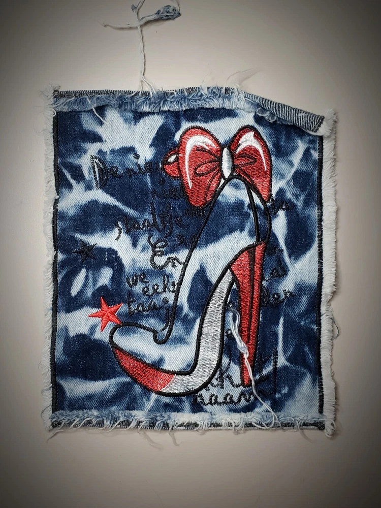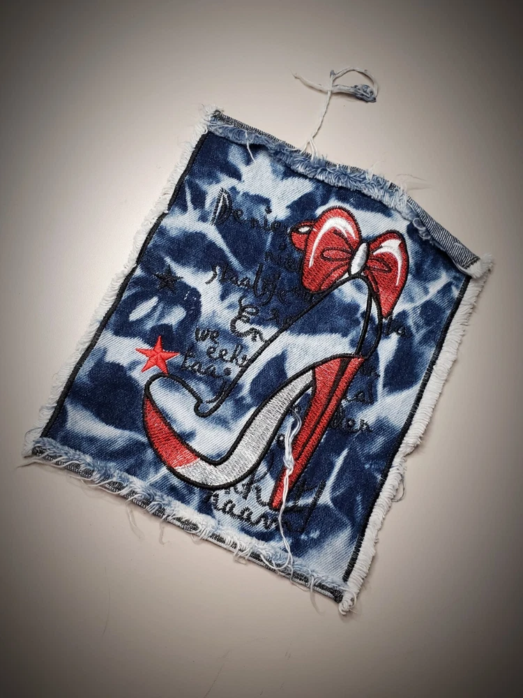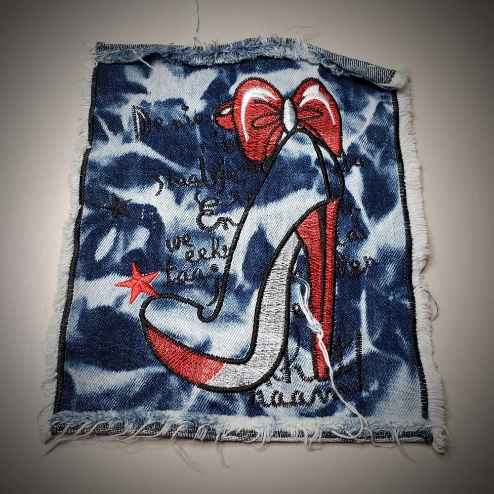 Denim patches for DIY projects - high hill shoes Size: height - 9.5 inches (24 cm) width - 7 inches (19 cm) Denim patches are ready-made appliqués that will help you decorate your favorite clothes or bag, will help to conceal the shortcomings of both small and large holes, and enough to create your own design. You can place the patch on the outside of a garment or bag. It will perfectly match your different denim clothes. The front side of the patches is 100% cotton (excluding the central part of the patch). Easy to apply: Repairing or decorating clothes or bags will take a little time. You need to stitch the outline of the patch or use fabric glue.