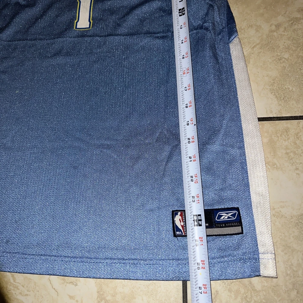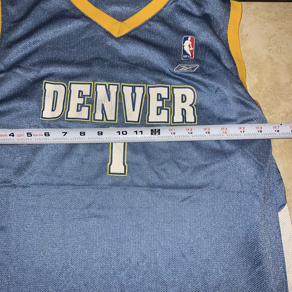 Show your support for the Denver Nuggets with this Reebok NBA Authentics #1 jersey. The powder blue color and XL size make it a perfect fit for any unisex adult fan. This jersey is officially licensed by the National Basketball Association (NBA) and features the team's logo on the front.