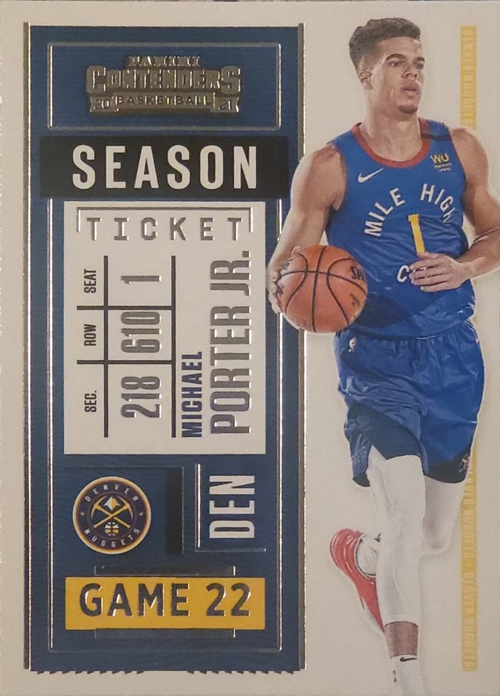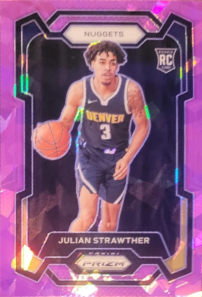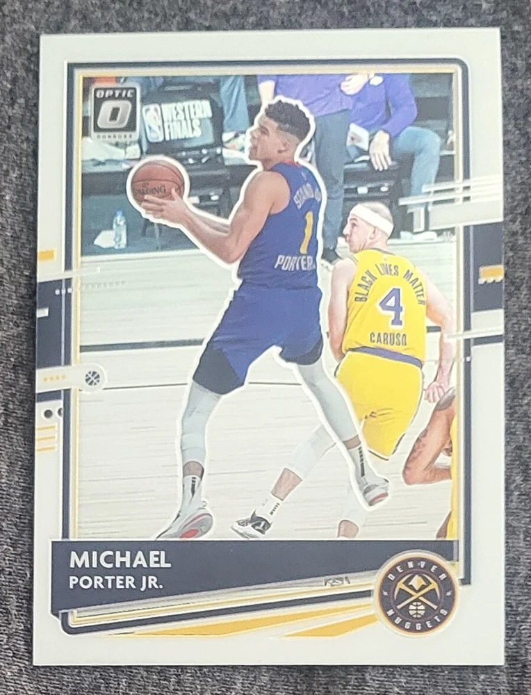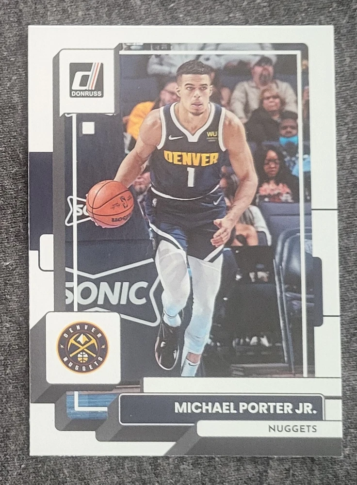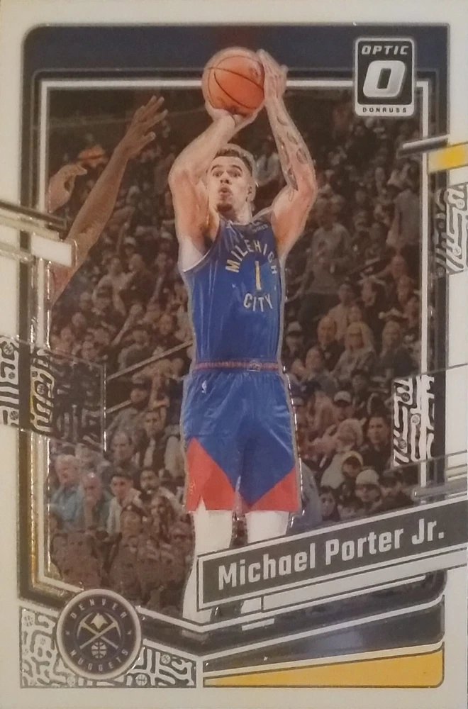 Elevate your Denver Nuggets collection with our carefully curated selection of trading cards featuring stars like Nikola Jokić, Jamal Murray, and Michael Porter Jr. Each card is a piece of basketball history, capturing the essence of the game and the athletes' prowess on the court. With a variety of sets and years represented, there's a card for every enthusiast and collector. Crafted in the United States, our cards come in standard size and are printed on high-quality card stock. Choose from a range of features such as base sets, inserts, rookies, and parallel/variety cards to find the perfect addition to your collection or the ideal gift for the basketball fan in your life.