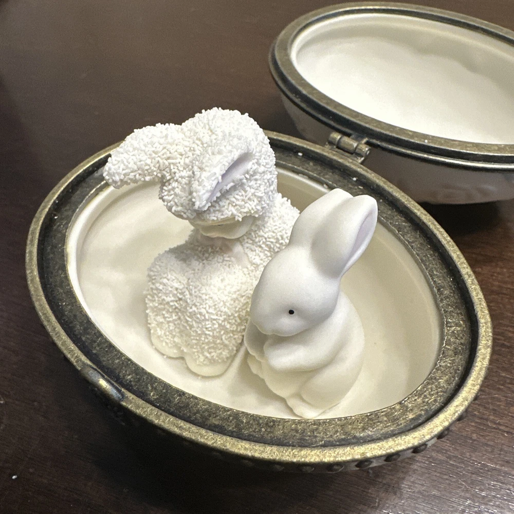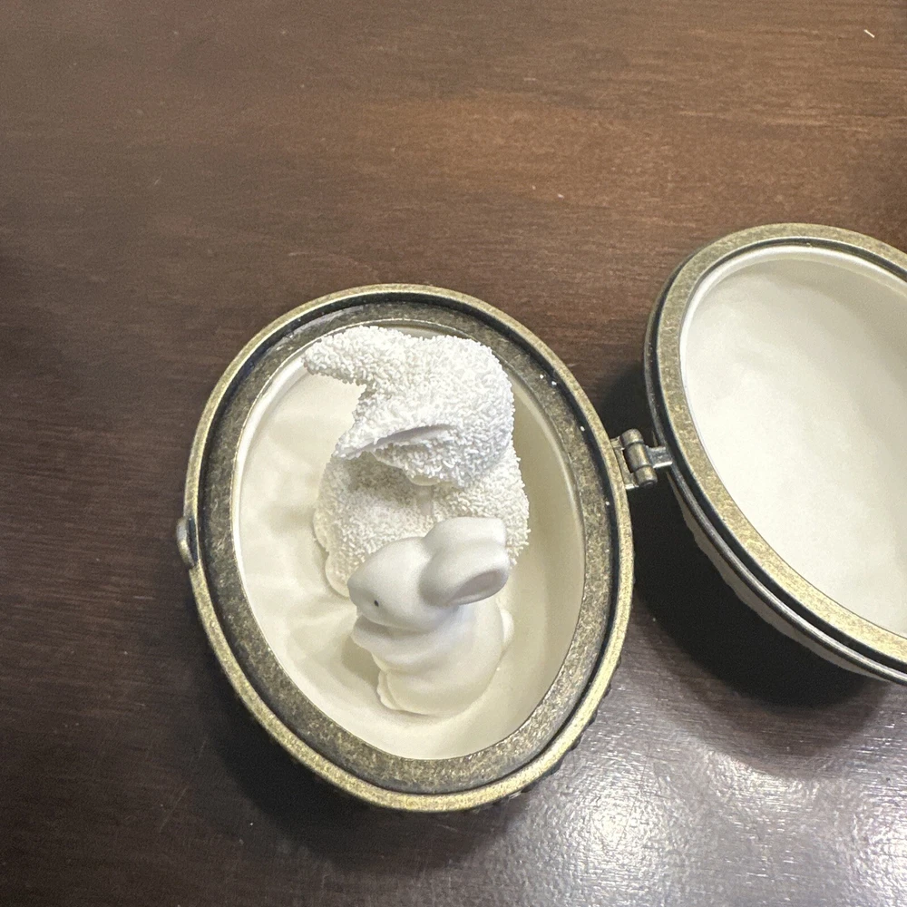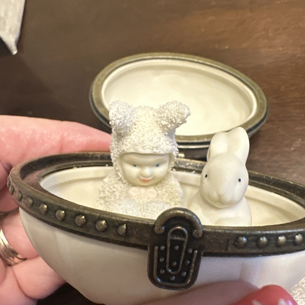 Absolutely adorable! This charming Snowbabies trinket box is a must-have for collectors. The delicate porcelain egg has a lovely matte finish and feels special with the artist’s signature. Perfect size for small treasures, and the Easter theme makes it a sweet seasonal display piece. Comes nicely boxed—great condition for a vintage find! Highly recommend for Snowbabies fans or anyone who loves timeless holiday decor.