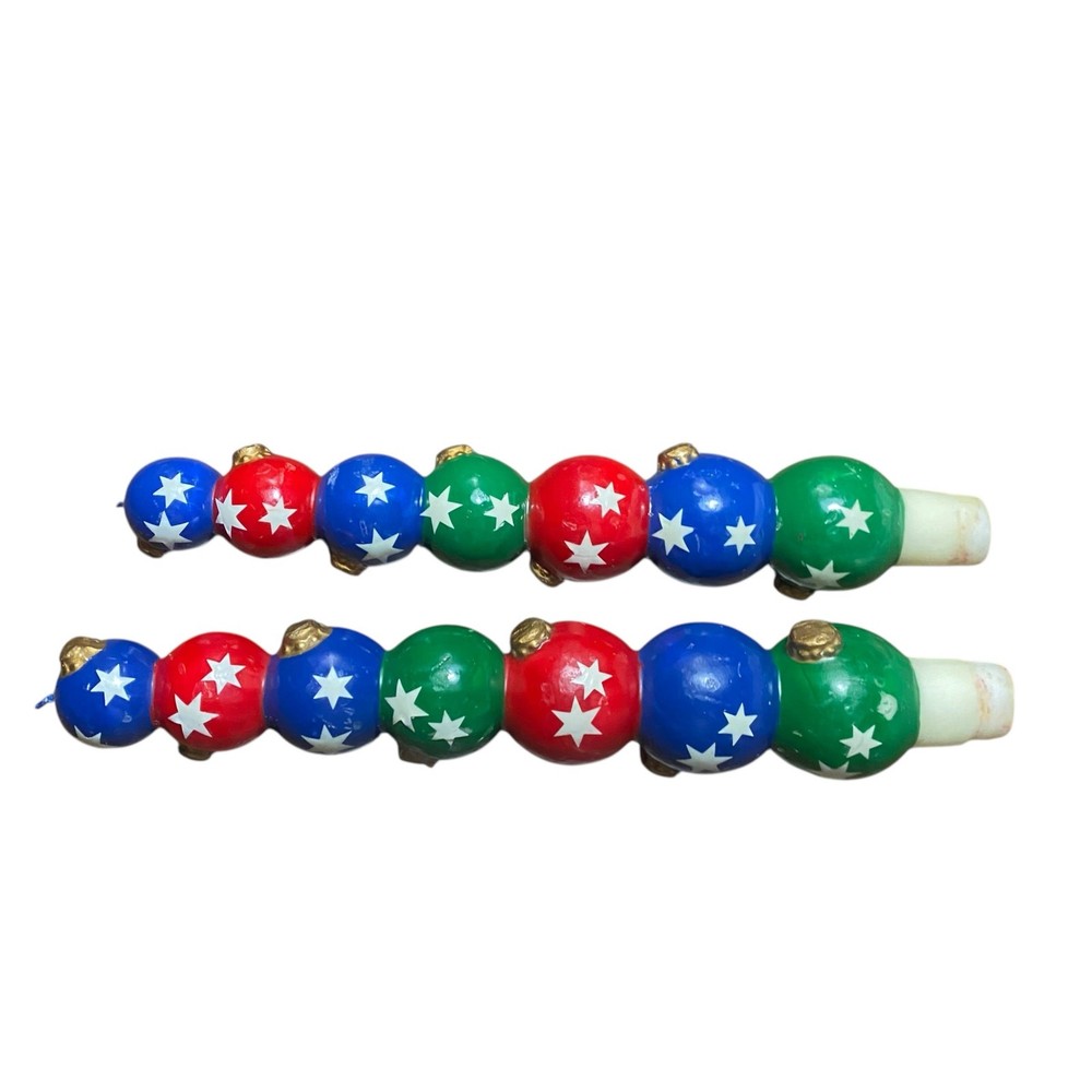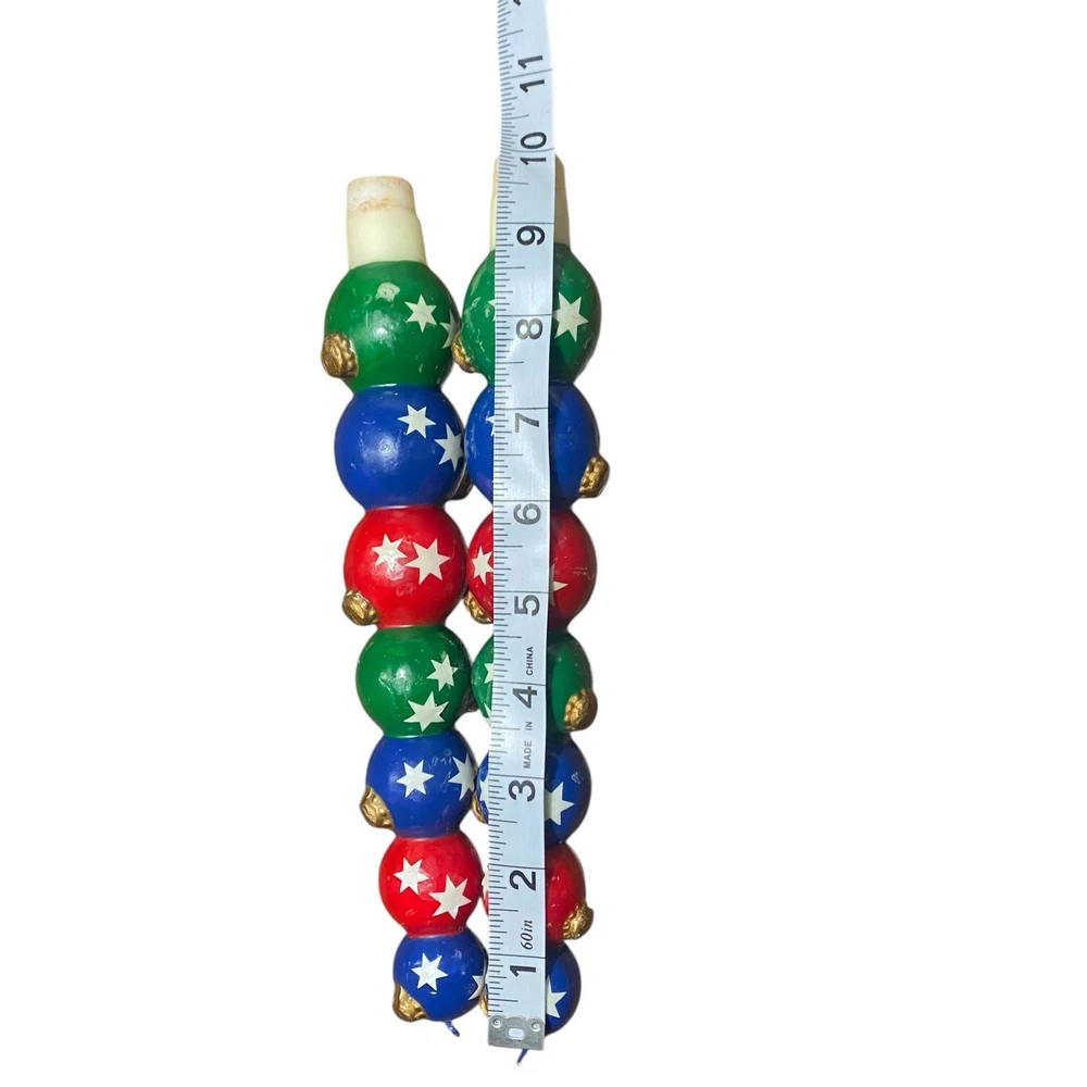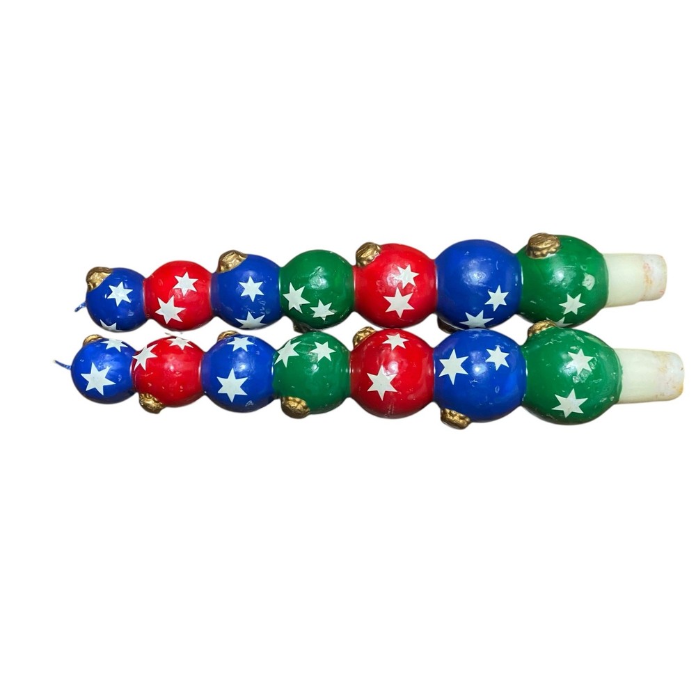 Department 56 (2) Vintage Christmas Taper Candles Colorful Ornament Stack Vintage set of 2 candles with colorful round ornament shape Color in pics may vary due to lighting and/or monitor settings Approx. 10" tall SHOP POLICIES * All items ship within 1-3 business days (I always try to ship by next business day) * This item is used vintage/pre-loved * Any defects (if any) are noted and shown in the photos * All sales are final * Please review the description/pictures and ask questions before purchasing