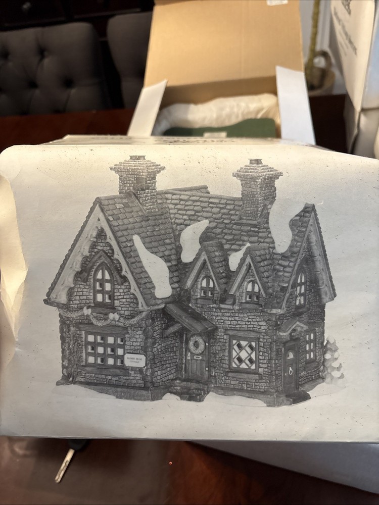 The Department 56 Dicken's Village Series "Barmby Moor Cottage" #58324 is a collectible porcelain cottage from the Heritage Village Collection. Hand painted with intricate details, this original piece was manufactured in 1997 as part of the holiday-themed villages and houses series. Celebrate the charm of the English countryside with this nostalgic addition to your holiday decor.