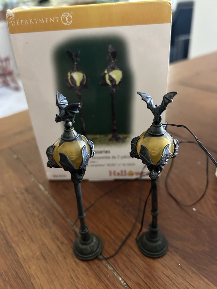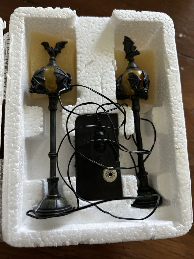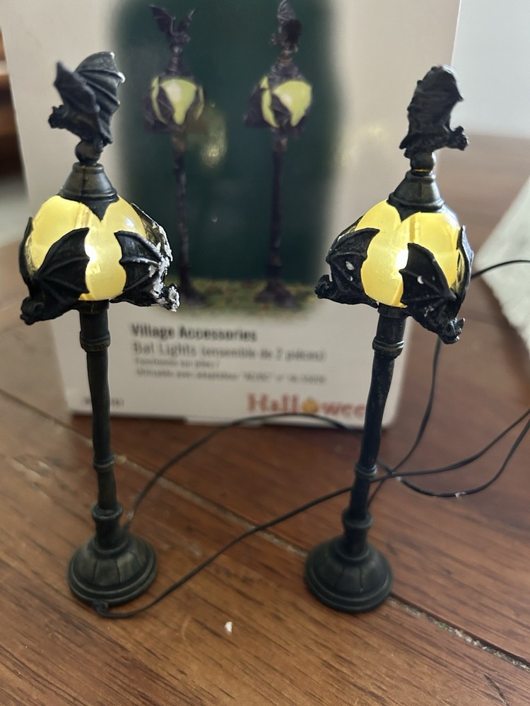 The Department 56 Halloween Series Bat Lights Set of 2 #53167 is a small and illuminated lights set designed for furniture decoration during the Halloween season. This set includes two bat-shaped lights from the Halloween collection by Department 56, featuring a seasonal theme perfect for any room in the house. Packaged in a box, these original lights from the 21st century are a great addition to your Halloween décor, adding a touch of spooky charm to your space. Made in China, these lights are an ideal choice for adults looking to enhance their Halloween atmosphere. Stored in original box.