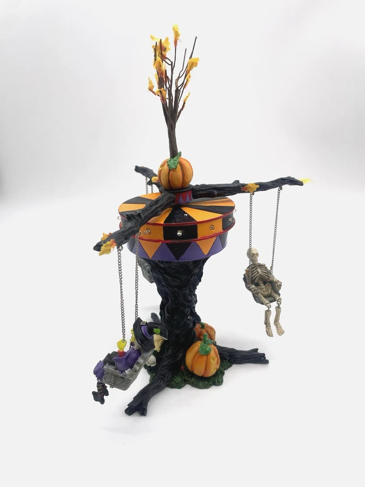 Department 56 Halloween Swinging Ghoulies Village Accessories 53133 - READ. Condition is For Parts or Repair. Lights works well but swinging mechanism is not functional. Please see photos for more details.