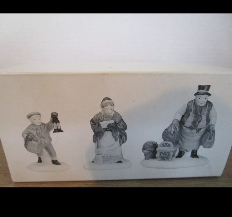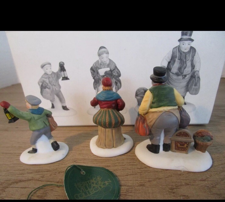Enhance your holiday décor with this set of 3 Department 56 Heritage Village Come Into the Inn figures. These ceramic and porcelain figures feature a multicolor all-over pattern and a matte finish. The set includes a medium-sized figure of a man, a woman, and a child, all suitable for any room in your home. The late 20th-century figures are part of the Heritage Village collection and come in a boxed packaging. They are perfect for collectors or anyone looking to add a touch of seasonal charm to their decor. The figures weigh 3 pounds and measure 8 inches in height and 10 inches in width. Add these original Come Into the Inn figures to your collection today!