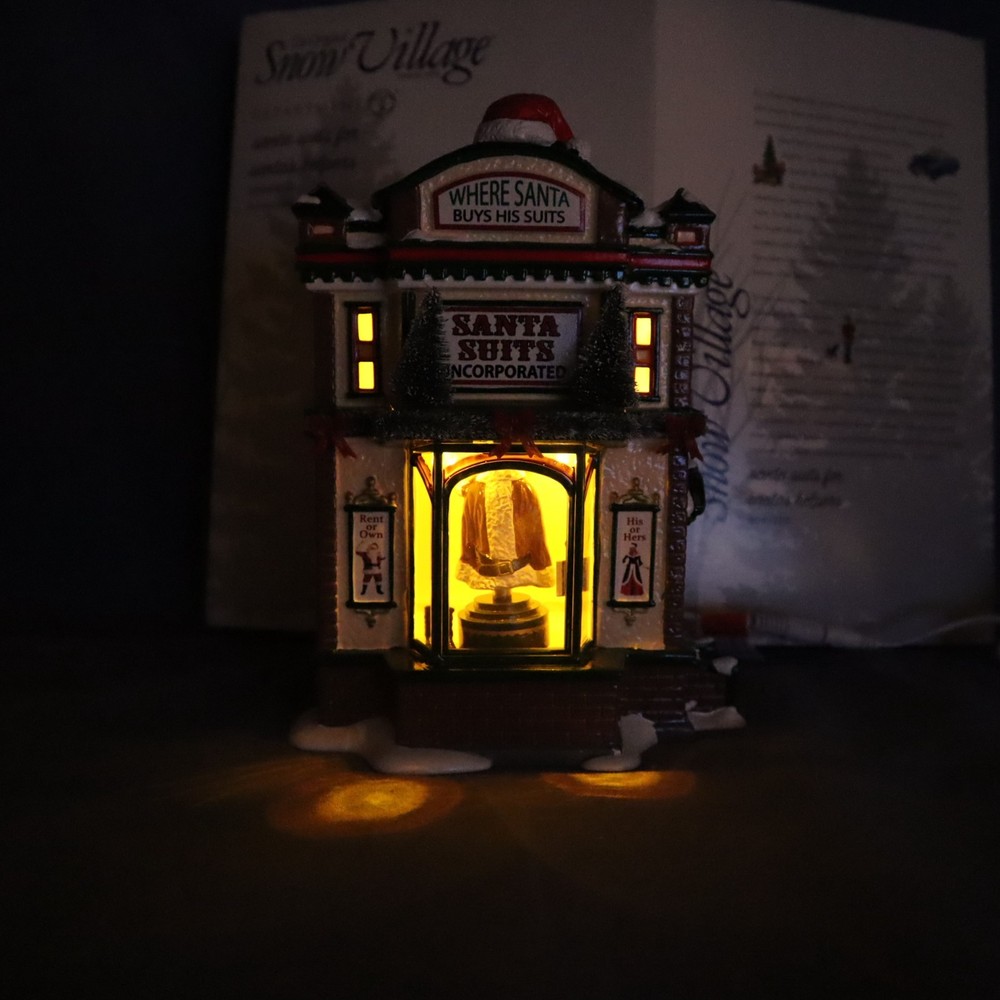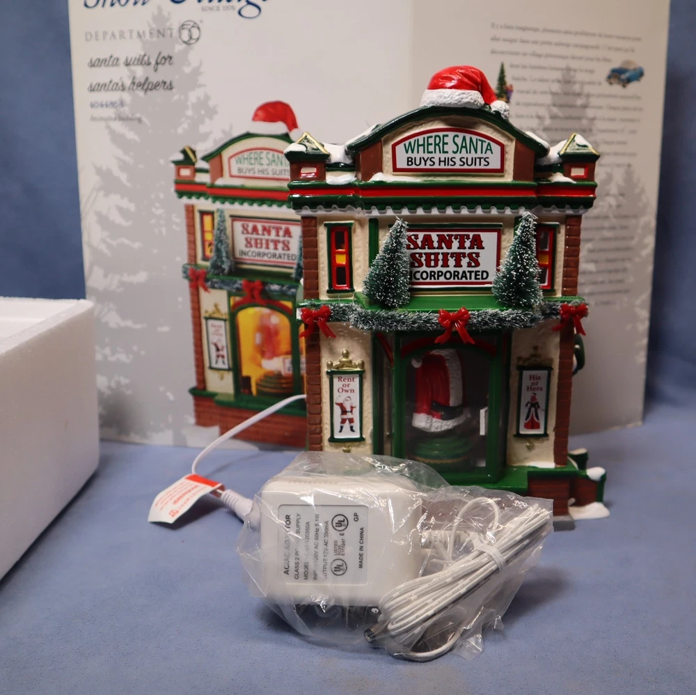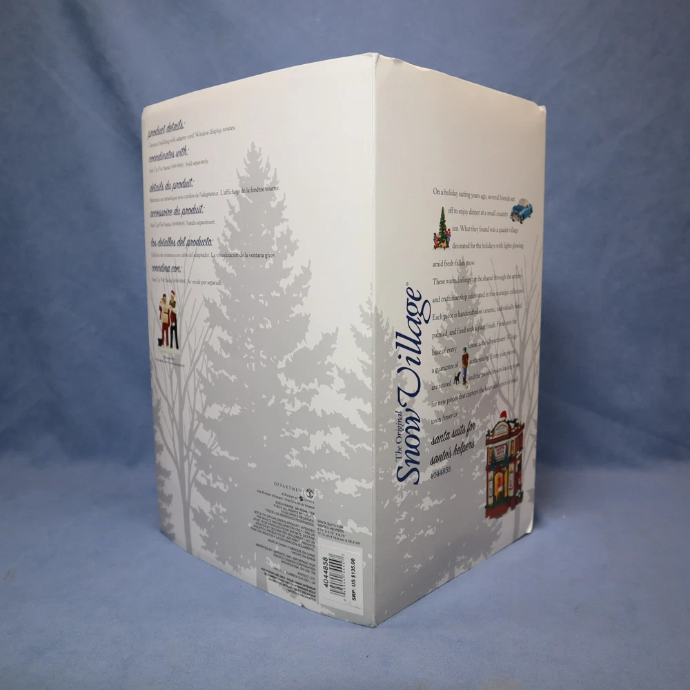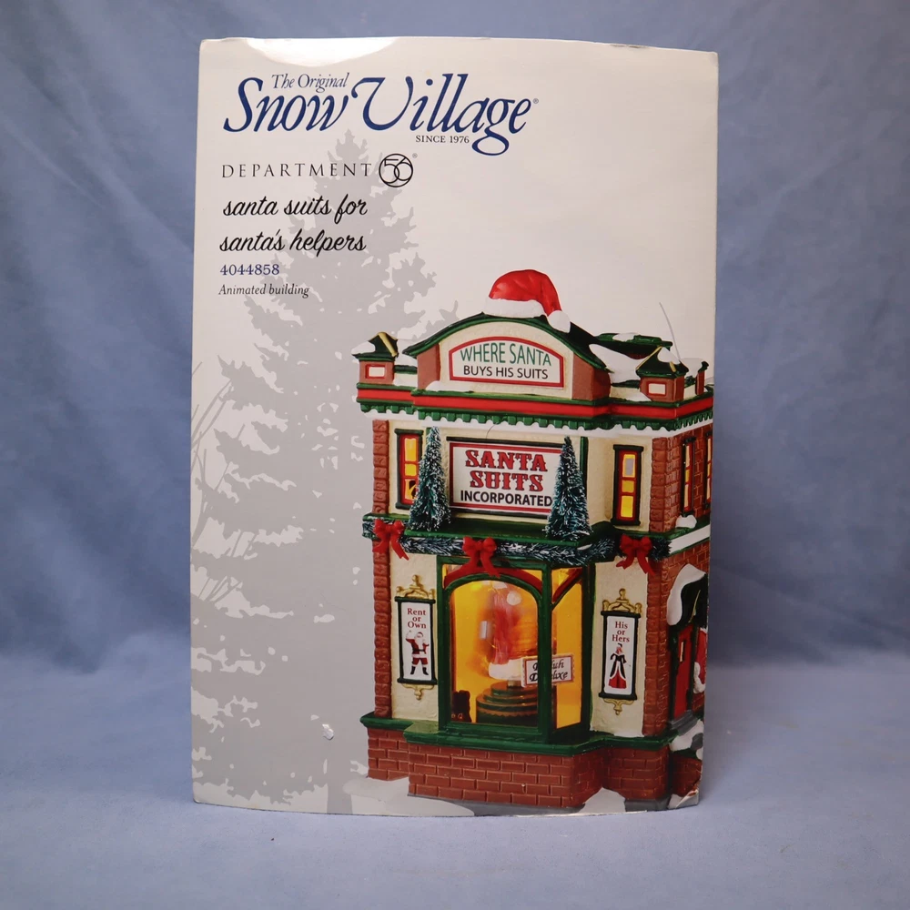 The Department 56 Santa Suits For Santa's Helpers #4044858 Snow Village is a medium-sized ceramic and porcelain Christmas village building in the shape of a house. This American-style collectible from the Snow Village collection features a multicolor painted finish and is suitable for furniture placement in any room during the holiday season. With animated features and boxed packaging, this retired piece from 2015 is a charming addition to any Christmas decor. Made by Department 56, this Santa's helper house is a perfect addition to your holiday villages display. All sales are as pictured so please look at pictures carefully as I will list all exceptions I see but I might miss something. Please ask if there is any doubt. ALL SALES ARE FINAL NO RETURNS International please ask for shipping quote before. Good Luck