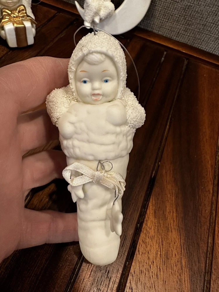 Department 56 Snow Babies Christmas Ornaments Lot of 4, used in good condition. 1-1068-0-1/25’