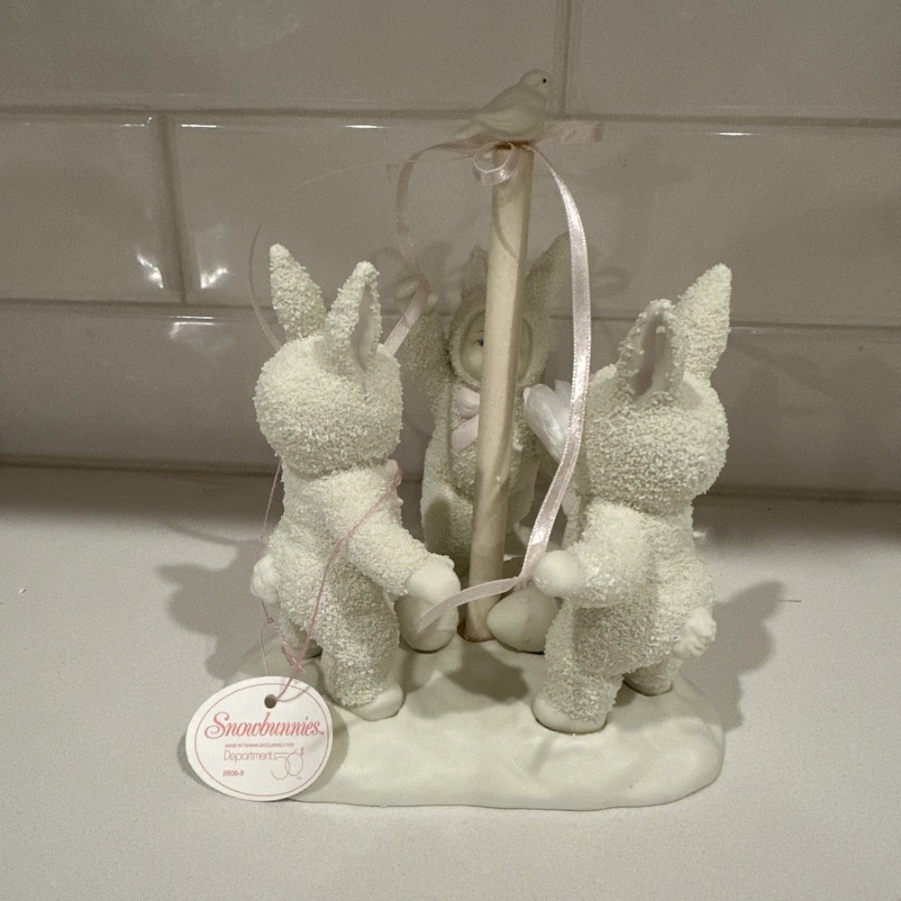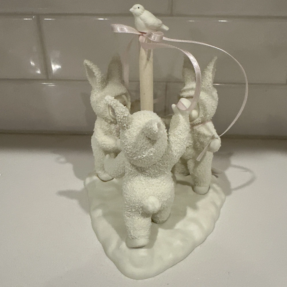Add a touch of springtime to your collection with this charming Department 56 Snowbunnies figurine. The TRA-LA-LA piece features three bunnies playing music, with a textured finish that adds depth and detail to the ceramic and porcelain figurine. The white bunnies are perfect for Easter or any springtime occasion, and the figurine comes in its original box for safekeeping. Made in Taiwan, this collectible piece is sure to delight adults and children alike. The Snowbunnies collection is a beloved seasonal theme, and this figurine is no exception. Perfect for display on a mantle or bookshelf, this piece will bring a smile to anyone's face.
