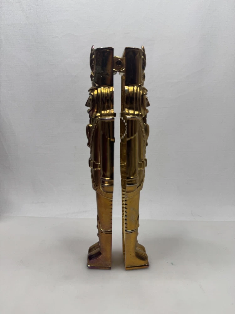 This Department 56 Toy Soldier Brass 8" Nutcracker is a vintage collectible that will add a touch of elegance to your Christmas decor. Made of high-quality brass, this nutcracker is intricately designed with a boxing subject and comes with a vintage look that will make it stand out in your collection. The nutcracker is perfect for collectors and enthusiasts of all ages and will make a great addition to any holiday display.