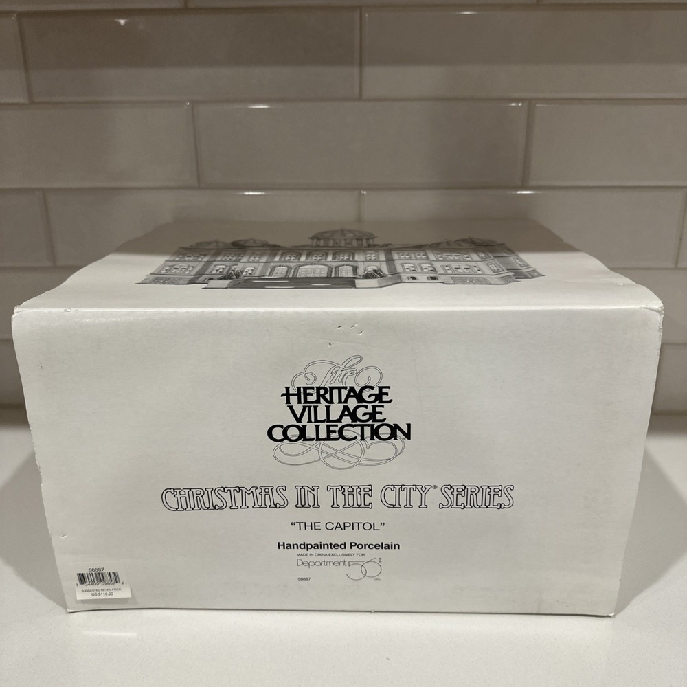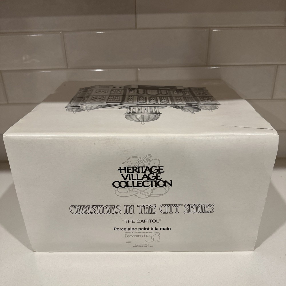 The VTG Department 56 Christmas in the City The Capitol Building 58887 is a brand new in box Christmas village house from the Christmas in the City collection. This lit house features a city-themed design, perfect for collectors of holiday decor. With its vintage appeal and being retired in 1998, this piece adds a nostalgic touch to any holiday display. The modified item showcases intricate details and is a must-have for fans of Department 56 collectibles.