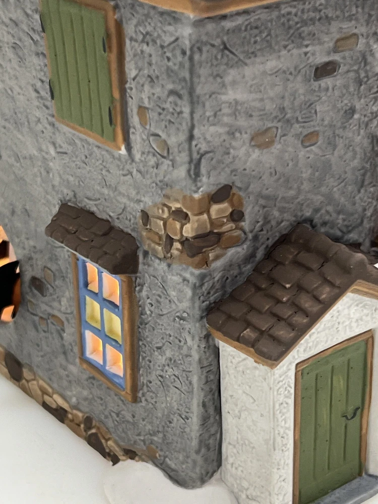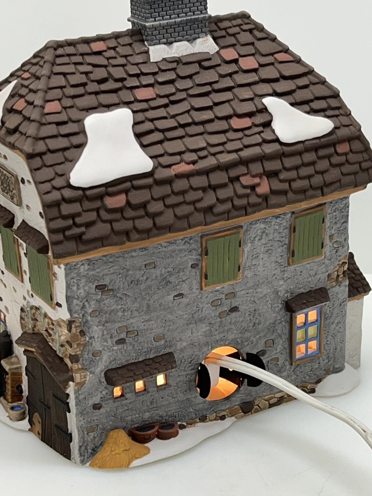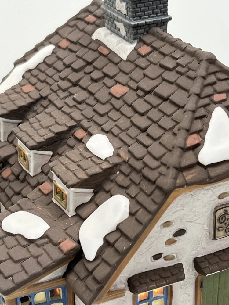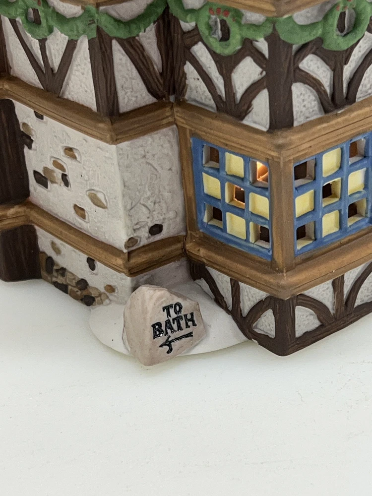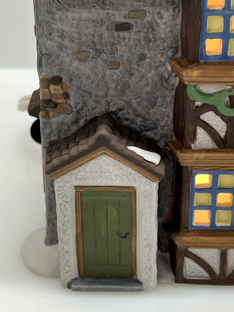 Dept 56 Dickens Heritage Village Series Sir John Falstaff Inn 57533 is a medium-sized Victorian-style ceramic and porcelain house from 1995. It is hand-painted, illuminated, and suitable for indoor seasonal display. The multicolor house is 8 1/2" tall, 6" deep, and 7 1/2" wide. Part of the Heritage Village Collection, it represents a Christmas-themed village scene, specifically the Dickens Village. It comes in its original boxed packaging and weighs 3 lbs. Absolutely mint clean pristine condition! Comes with original box and packaging Comes with cord & light Incredible detail