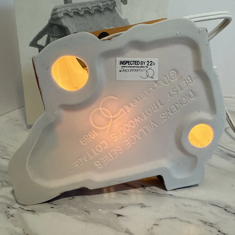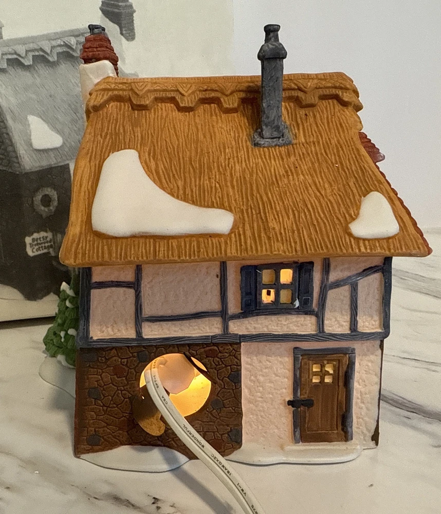 Retired: 1992 Room: Any Room Style: Victorian Subject: Betsy Trotwood’s Cottage Year: 1989 Original/Reproduction: Original Brand: Department 56 Character Family: Heritage Village Collection Material: Porcelain Type: Christmas Village Theme: Seasonal Shape: Asymmetrical Modified Item: No Color: Multicolor Occasion: Christmas Year Manufactured: 1989 Time Period Manufactured: 1980-1989 Department: Adults Collection: Dickens Village
