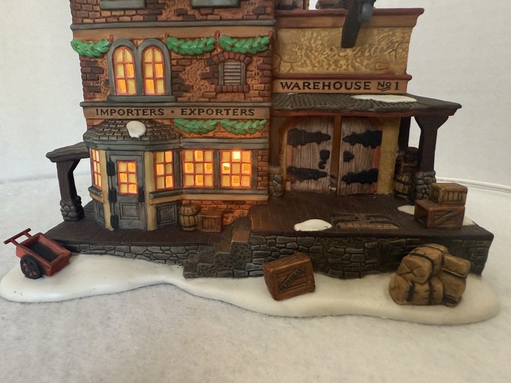 Item is in good preowned condition, demonstrates mild wear. Box demonstrates wear. Please see pictures for full description. Dept 56 Dickens' Village Series "EAST INDIES TRADING CO." #58302 W/ Box & Light Bin JJ