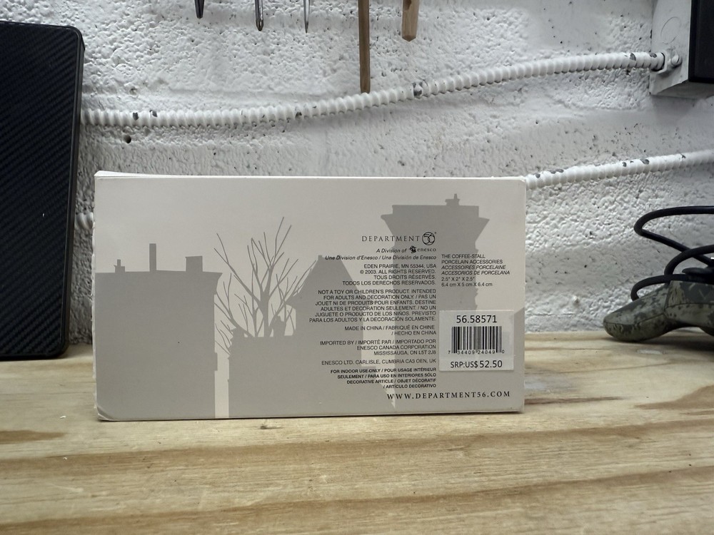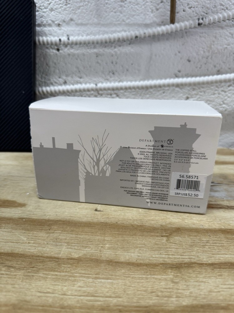 Dept 56 #58571 β The Coffee Stall β Dickens Village β The Heritage Village Collection βπ Add warmth and charm to your Dickens Village display with The Coffee Stall by Dept 56. This detailed accessory captures a cozy Victorian-era coffee stand, perfect for bringing life and character to your holiday village scene. Details: β Collection: Dickens Village Series β Item #: 58571 β Series: The Heritage Village Collection β Includes original figurine/accessory piece (no light or cord) β Made of hand-painted porcelain π― Condition: Piece is in great condition with no chips or cracks Comes in original Dept 56 packaging with fitted foam insert Box may show light shelf wear See photos for exact condition π A charming and collectible piece for any Dept 56 or holiday village fan π Fast Shipping & Secure Packaging! Thanks for looking! β RetroMementos