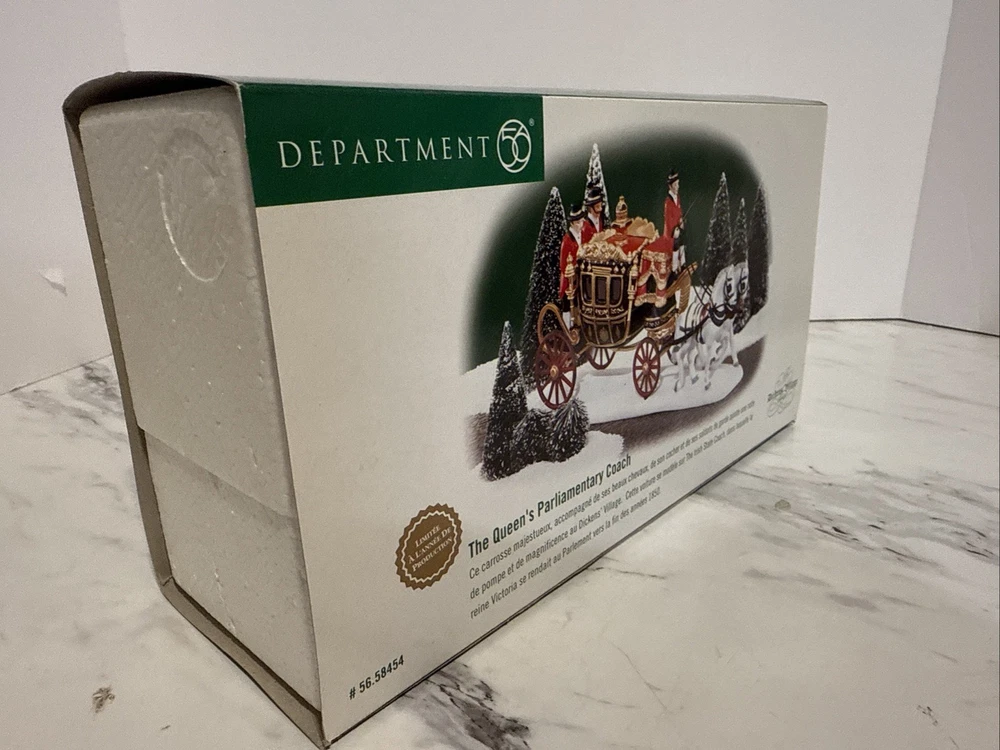 Dept 56 Dickens Village The Queen’s Parliamentary Coach Limited Edition 2000 NEW NEW, open box. I opened the box and removed the item for the first time to take photos and to inspect for condition. Please review all photos for best representation. Thank you for looking and supporting my small business!