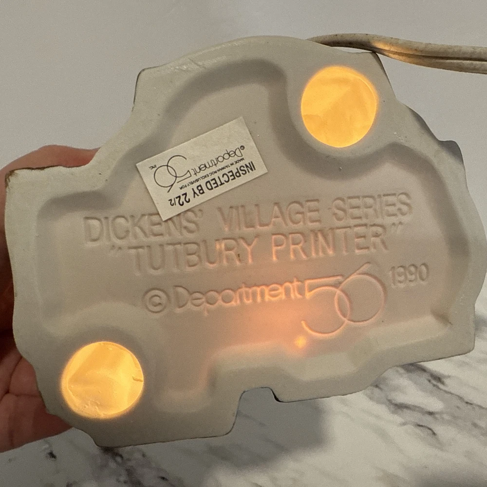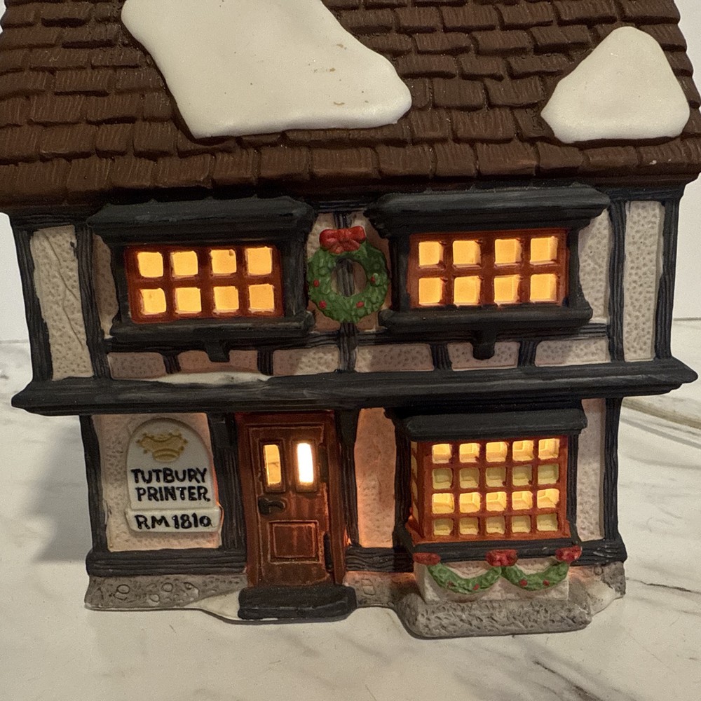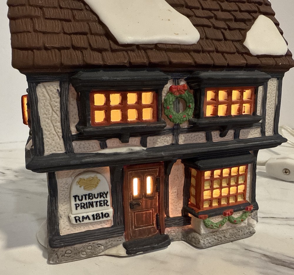 Dept 56 Dickens Village Series Tutbury Printer 1990 Christmas Tested READ… Pre-Owned. Good condition overall but there are some small brown spots on snow top front roof. See all photos for best representation. Note: The cardboard storage sleeve is missing and the top of the foam box is missing as well. See photos. Thank you for looking and supporting my small business!