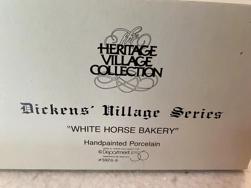 Dept 56 White Horse Bakery 5926-9 Dickens Heritage Village W/box & Light EUC. Please see pictures are full description. Bin R