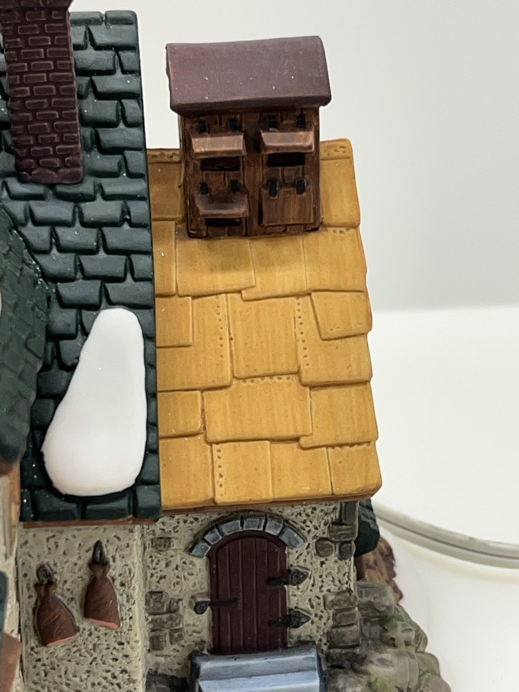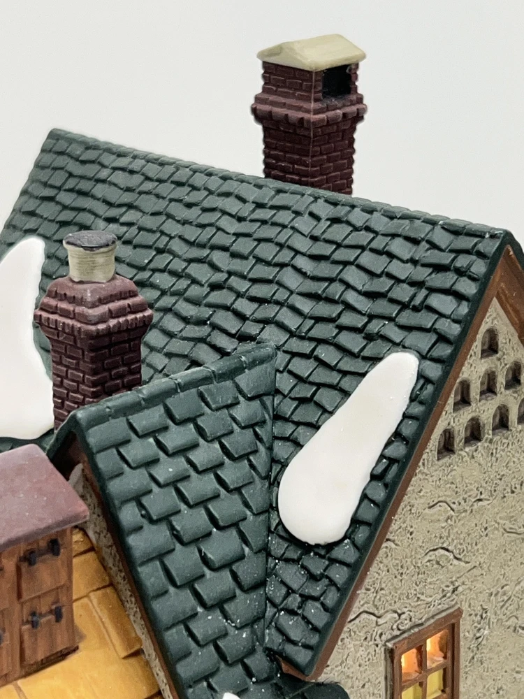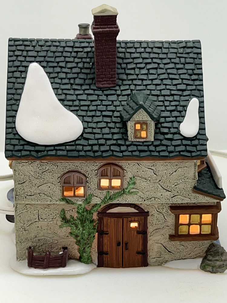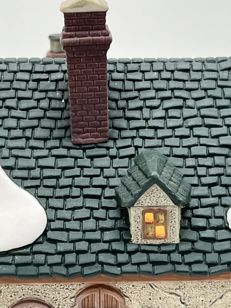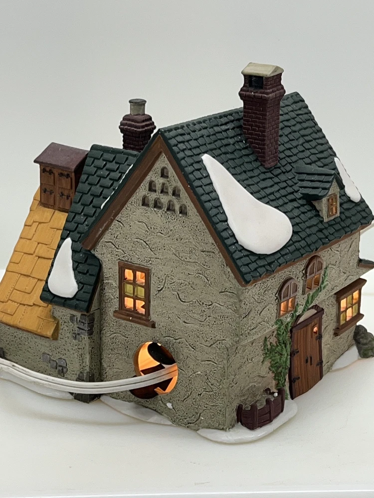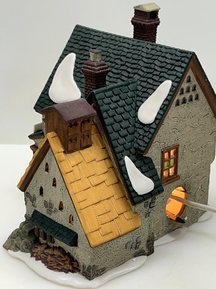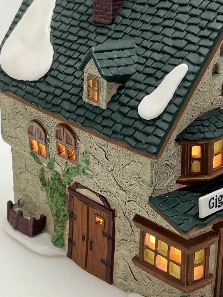 Dept 56 "Giggleswick-Mutton & Ham" is a medium-sized Victorian style ceramic Christmas village house from the Dickens Village Collection. This retired piece features a multicolor painted finish, measures 7.25 inches in length, 7 inches in height, and 6 inches in width. It is suitable for a seasonal village display and comes boxed. The item is part of the Department 56 brand and is ideal for a fantasy-themed, seasonal, or novelty Christmas village setup. Absolutely perfect condition with all original packaging including light & cord