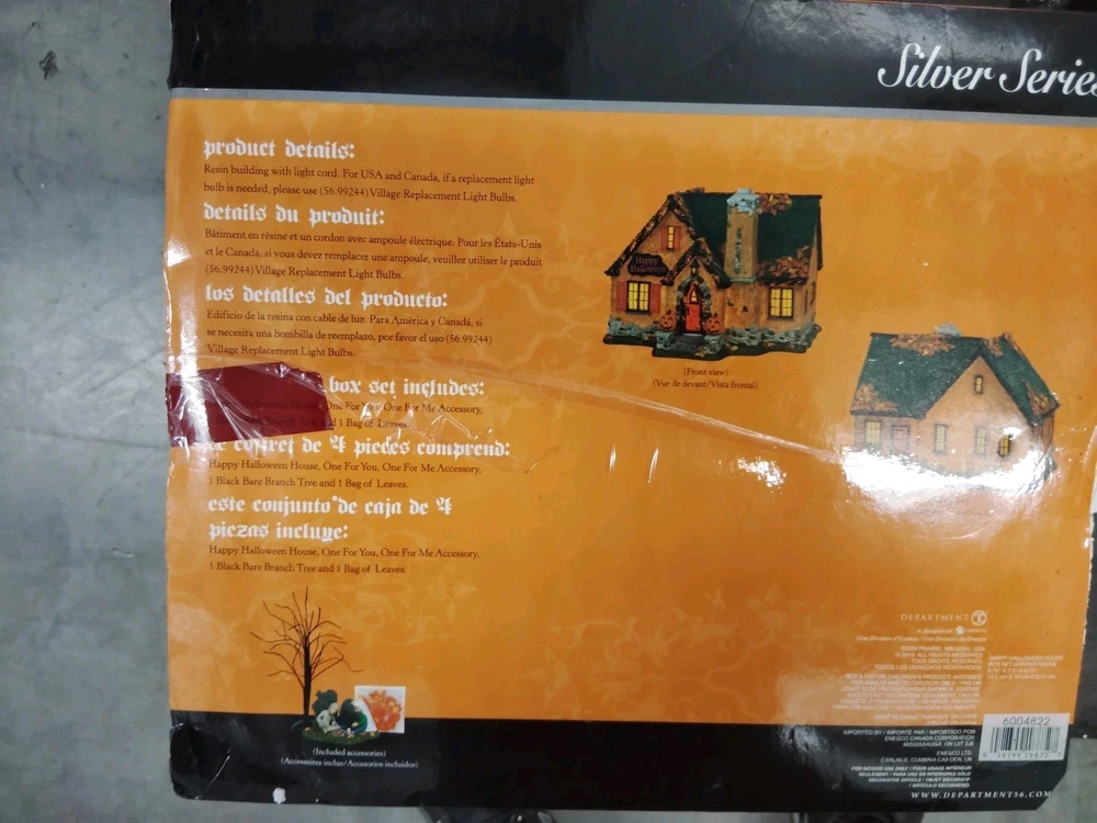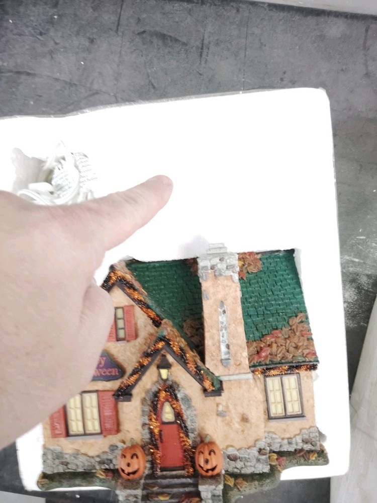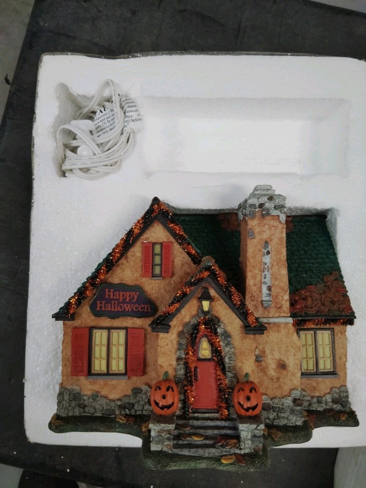 Please note::: there are two missing pieces...the people outside next to the tree and the tree...this is for the Halloween house ONLY. .the light works inside house...the house is in very good condition...comes with original box...these are hard to find....free shipping