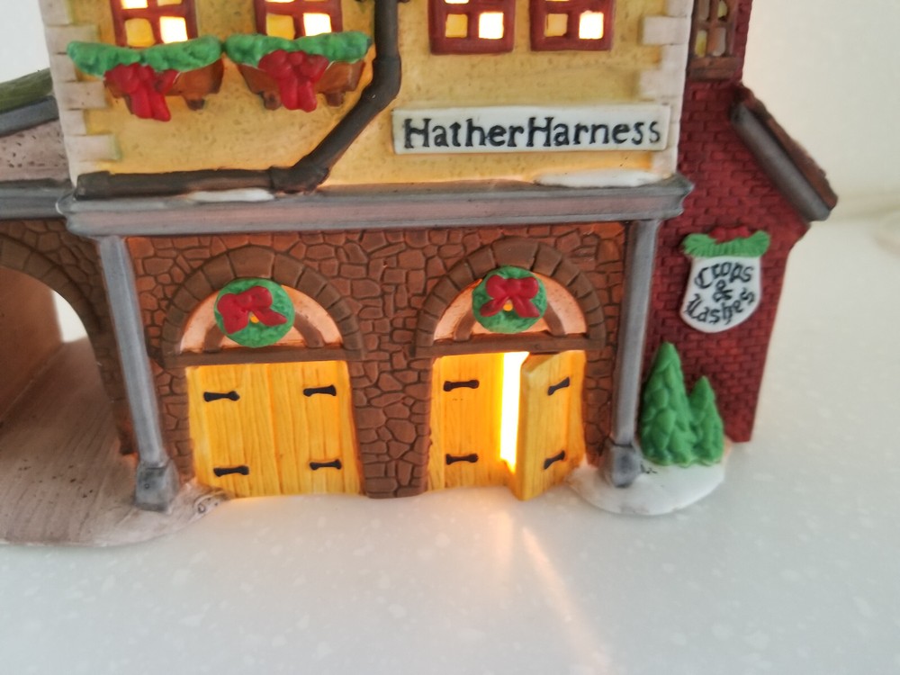 Department 56 Hather Harness 1994 Dickens Village Series #58238. Retired 1997. Very Good Preowned Condition with Light included. Please View Photos.